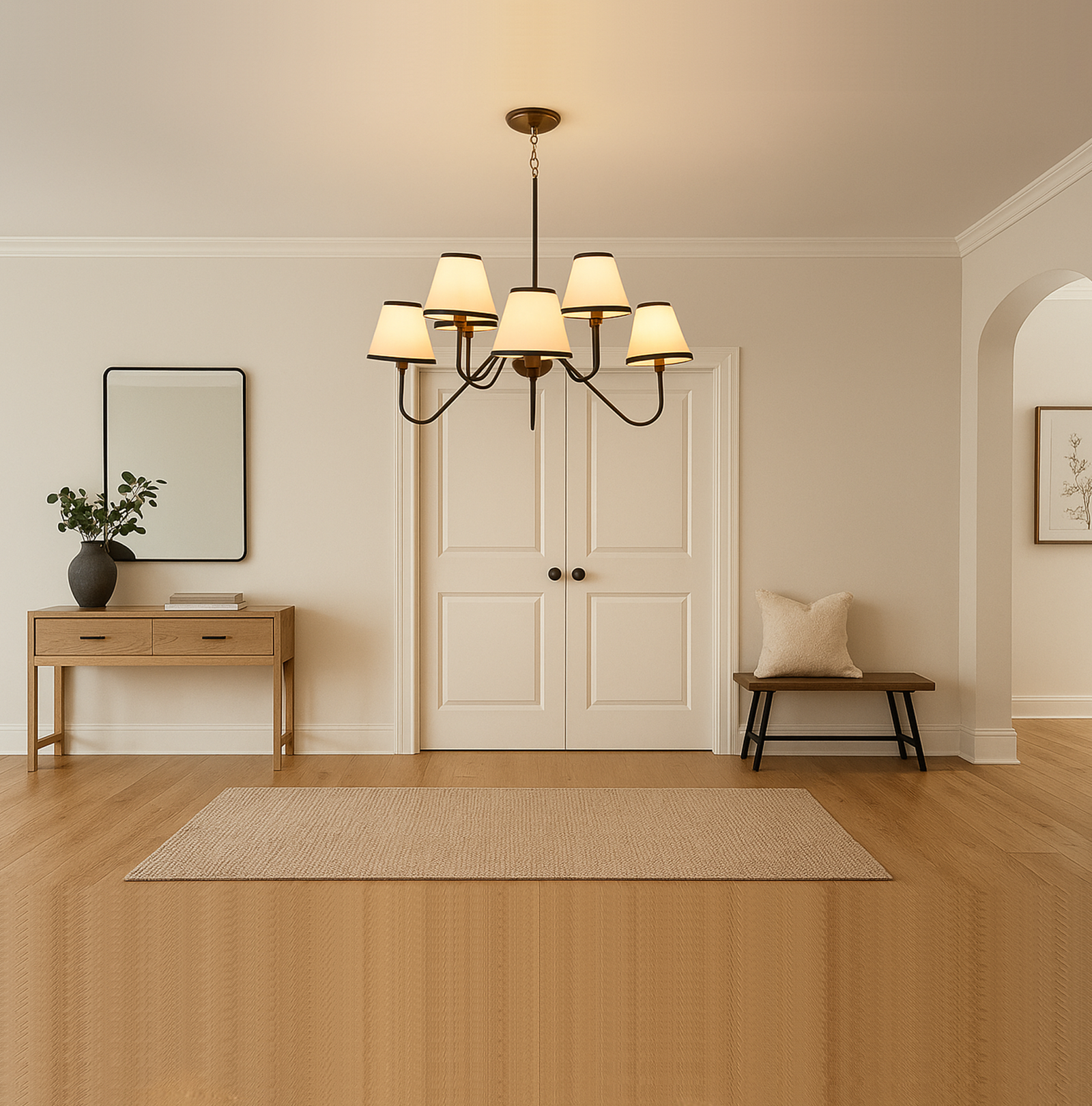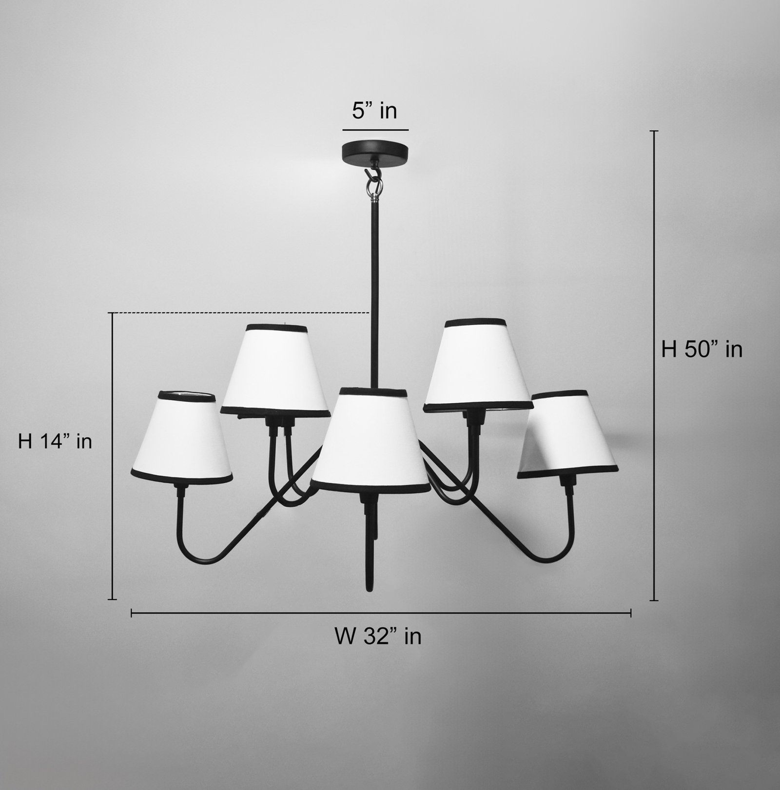 <h3 style="box-sizing: border-box; margin: 0px 0px 20px; line-height: 1.5em; font-size: 17px; font-family: "Open Sans", sans-serif; padding: 0px; color: rgb(40, 40, 40); background-color: rgb(255, 255, 255);"><span style="box-sizing: border-box; font-family: Inter, sans-serif, Zen; font-size: 18px; white-space-collapse: preserve-breaks; background-color: rgb(244, 245, 246);">Illuminate your space with this stunning Black chandelier featuring five elegant white shades. The vibrant red finish adds a bold touch to any room, while the soft white shades diffuse light beautifully, creating a warm and inviting atmosphere. Perfect for dining rooms, living areas, or entryways, this chandelier combines modern design with classic charm, making it a versatile addition to your home decor. Elevate your interior style and enjoy the perfect blend of color and light with this exquisite lighting fixture.</span></h3>