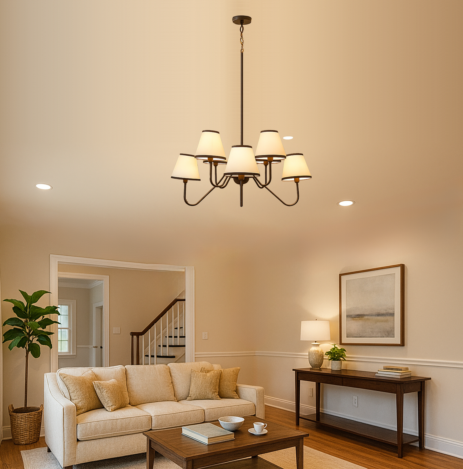 Illuminate your space with this stunning Black chandelier featuring five elegant white shades. The vibrant red finish adds a bold touch to any room, while the soft white shades diffuse light beautifully, creating a warm and inviting atmosphere. Perfect for dining rooms, living areas, or entryways, this chandelier combines modern design with classic charm, making it a versatile addition to your home decor. Elevate your interior style and enjoy the perfect blend of color and light with this exquisite lighting fixture.