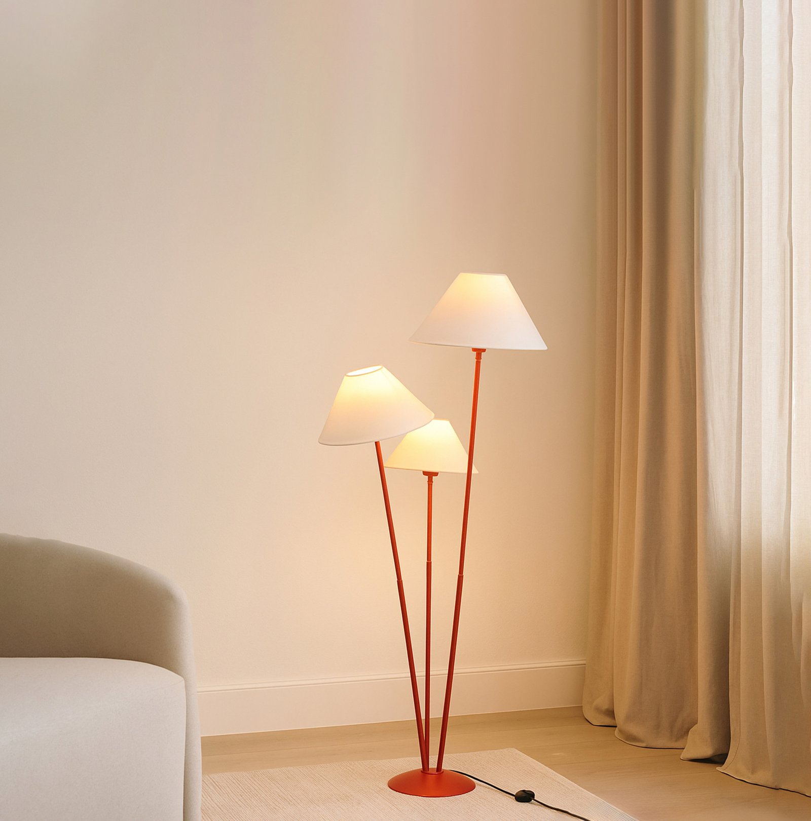 <h3 style="box-sizing: border-box; margin: 0px 0px 20px; line-height: 1.5em; font-size: 17px; font-family: "Open Sans", sans-serif; padding: 0px; color: rgb(40, 40, 40); background-color: rgb(255, 255, 255);"><span style="font-family: Inter, sans-serif, Zen; font-size: 18px; white-space-collapse: preserve-breaks; background-color: rgb(244, 245, 246);">Illuminate your space with this elegant three-light lamp, designed to enhance any room's ambiance. Each lamp features a unique shade that diffuses light beautifully, creating a warm and inviting atmosphere. The sturdy base ensures stability, while the modern design complements various decor styles. Perfect for reading, working, or simply adding a touch of sophistication to your home, this lamp is a versatile addition to your lighting collection. Upgrade your interior with this stylish and functional piece today.</span></h3>