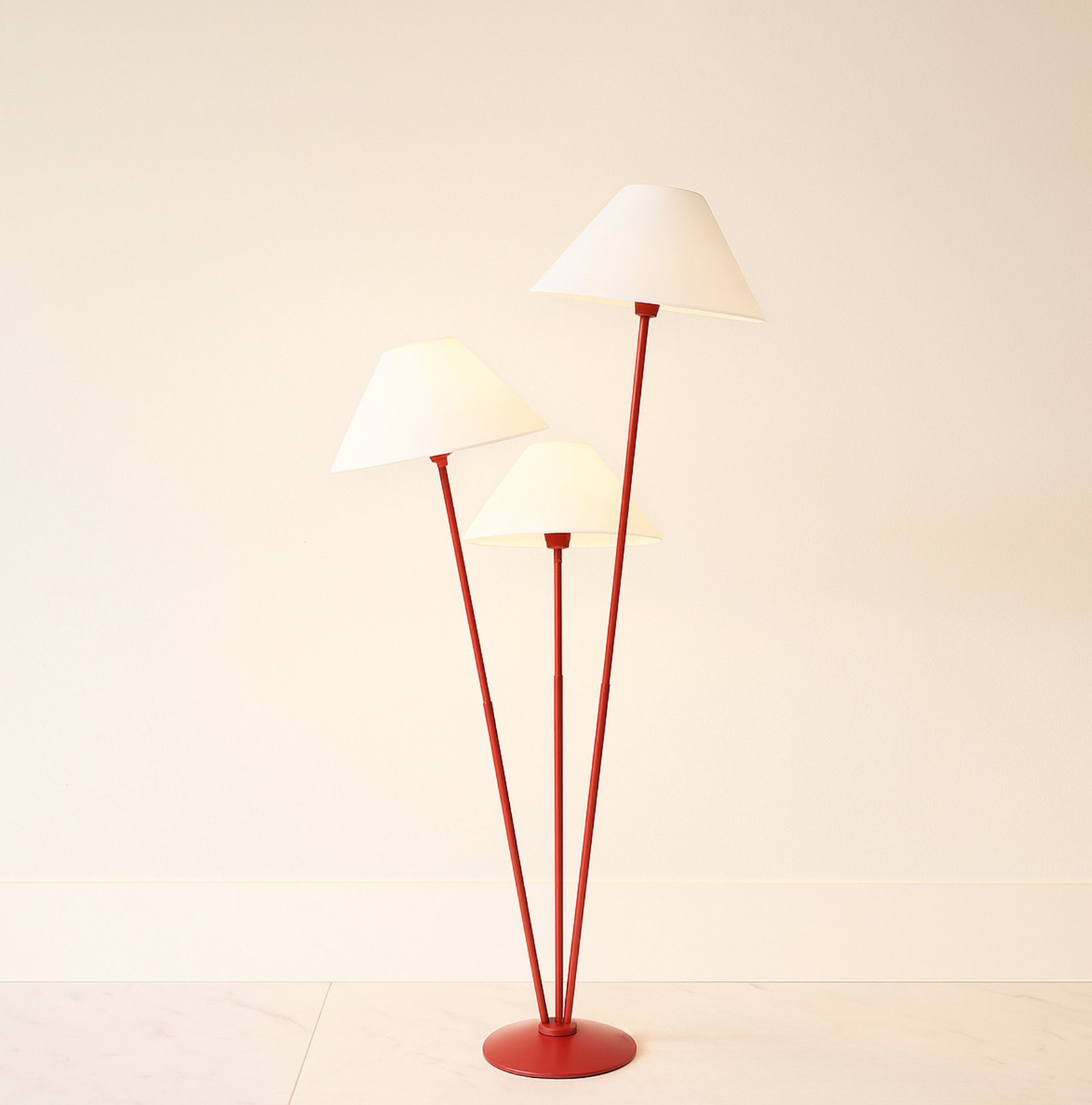 Illuminate your space with this elegant three-light lamp, designed to enhance any room's ambiance. Each lamp features a unique shade that diffuses light beautifully, creating a warm and inviting atmosphere. The sturdy base ensures stability, while the modern design complements various decor styles. Perfect for reading, working, or simply adding a touch of sophistication to your home, this lamp is a versatile addition to your lighting collection. Upgrade your interior with this stylish and functional piece today.