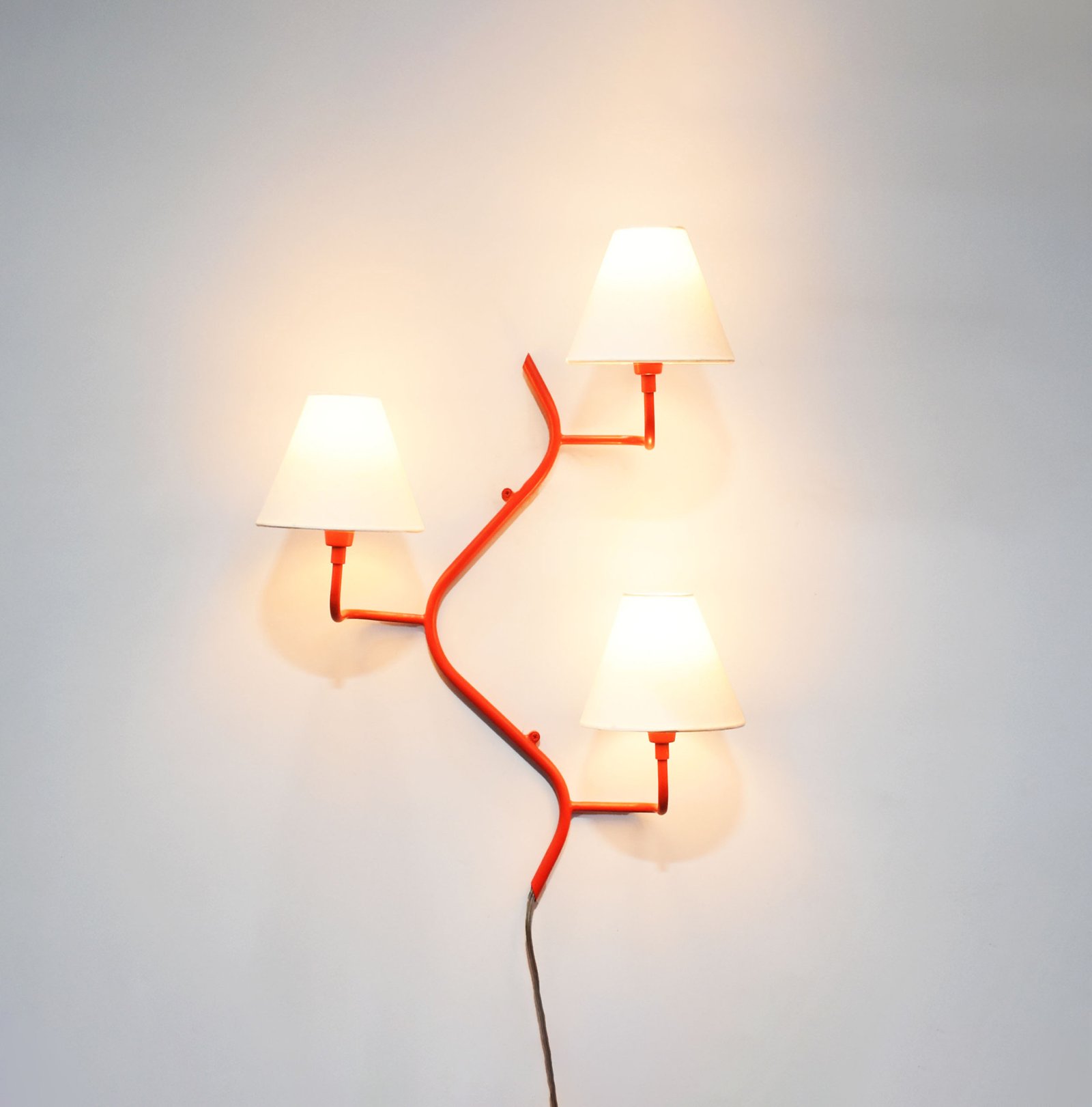 Introducing our exquisite wall lamp, a stunning addition to your home decor. With its sleek red color finish, this lamp exudes a sense of contemporary elegance that will enhance any space. The striking design, reminiscent of a delicate two branches, adds a touch of nature-inspired beauty to your walls. Its unique shape, gives it a charming and playful aesthetic that will surely catch the eye of your guests.