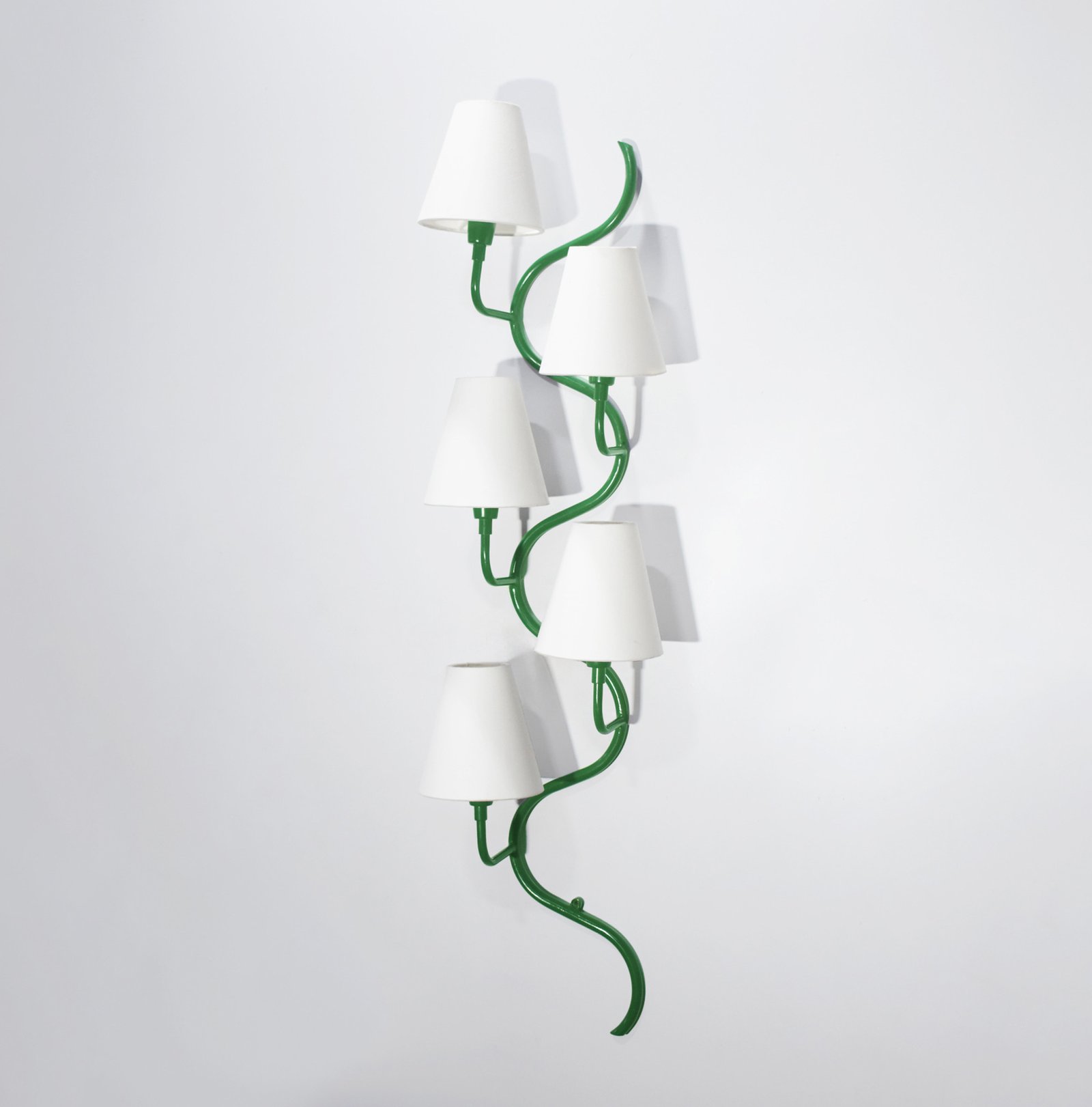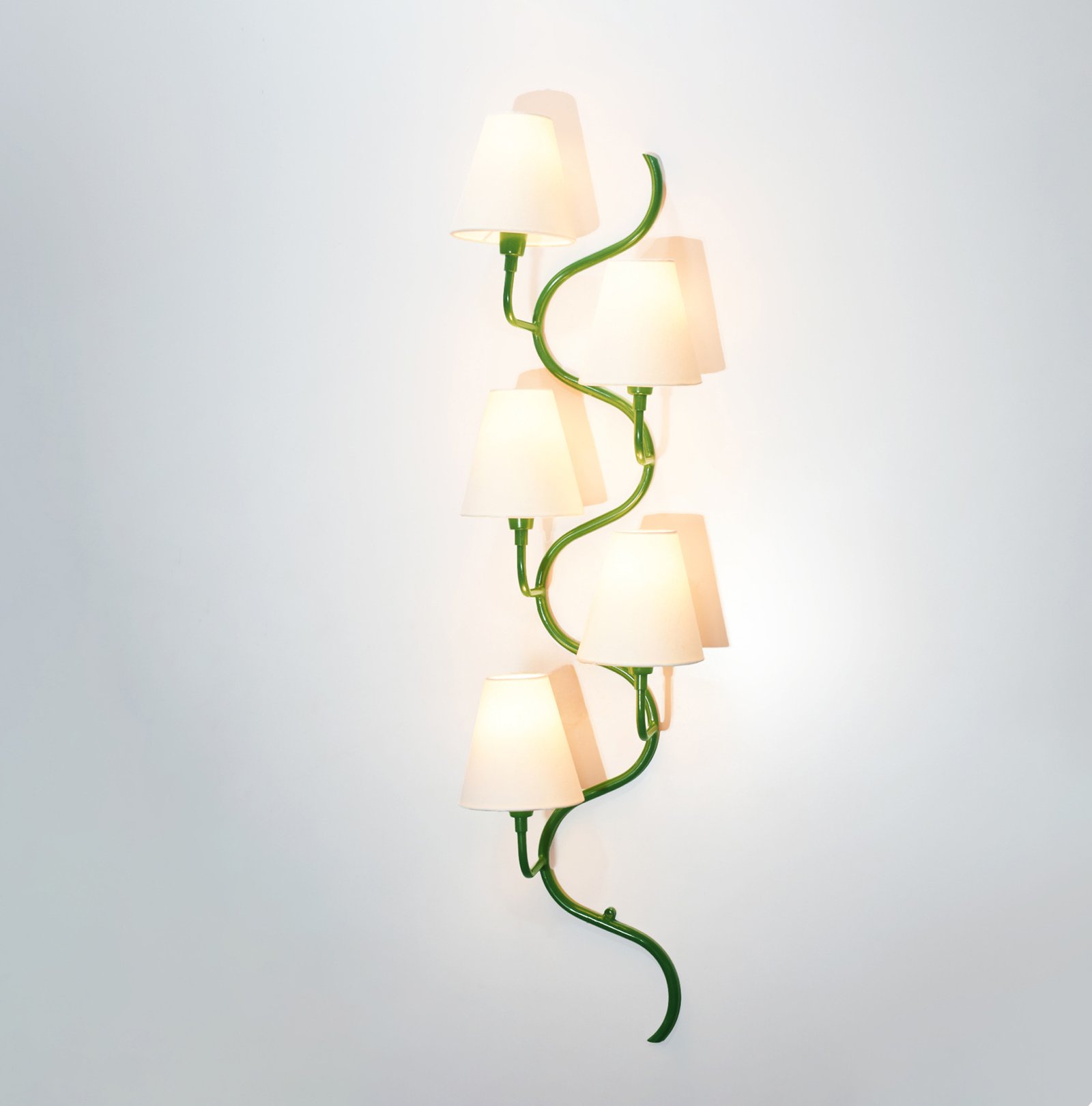 <h3 style="box-sizing: border-box; margin: 0px 0px 20px; font-weight: normal; line-height: 1.2em; font-size: 17px; font-family: sans-serif, Arial, Verdana, "Trebuchet MS"; padding: 0px; color: rgb(51, 51, 51); background-color: rgb(255, 255, 255);">Introducing our exquisite wall lamp, a stunning addition to your home decor. With its sleek green color finish, this lamp exudes a sense of contemporary elegance that will enhance any space. The striking design, reminiscent of a delicate one branch design, adds a touch of nature-inspired beauty to your walls. Its unique shape, gives it a charming and playful aesthetic that will surely catch the eye of your guests.</h3>