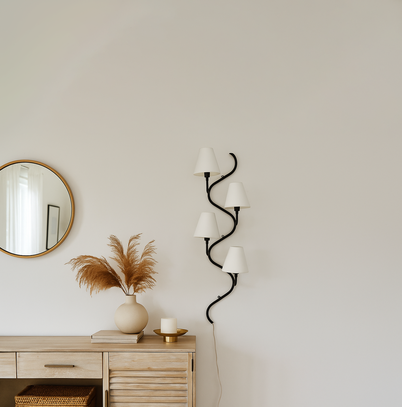 <h3 style="box-sizing: border-box; margin: 0px 0px 20px; font-weight: normal; line-height: 1.2em; font-size: 17px; font-family: sans-serif, Arial, Verdana, "Trebuchet MS"; padding: 0px; color: rgb(51, 51, 51); background-color: rgb(255, 255, 255);">Introducing our exquisite wall lamp, a stunning addition to your home decor. With its sleek black color finish, this lamp exudes a sense of contemporary elegance that will enhance any space. The striking design, reminiscent of a delicate one branch design, adds a touch of nature-inspired beauty to your walls. Its unique shape, gives it a charming and playful aesthetic that will surely catch the eye of your guests.</h3>