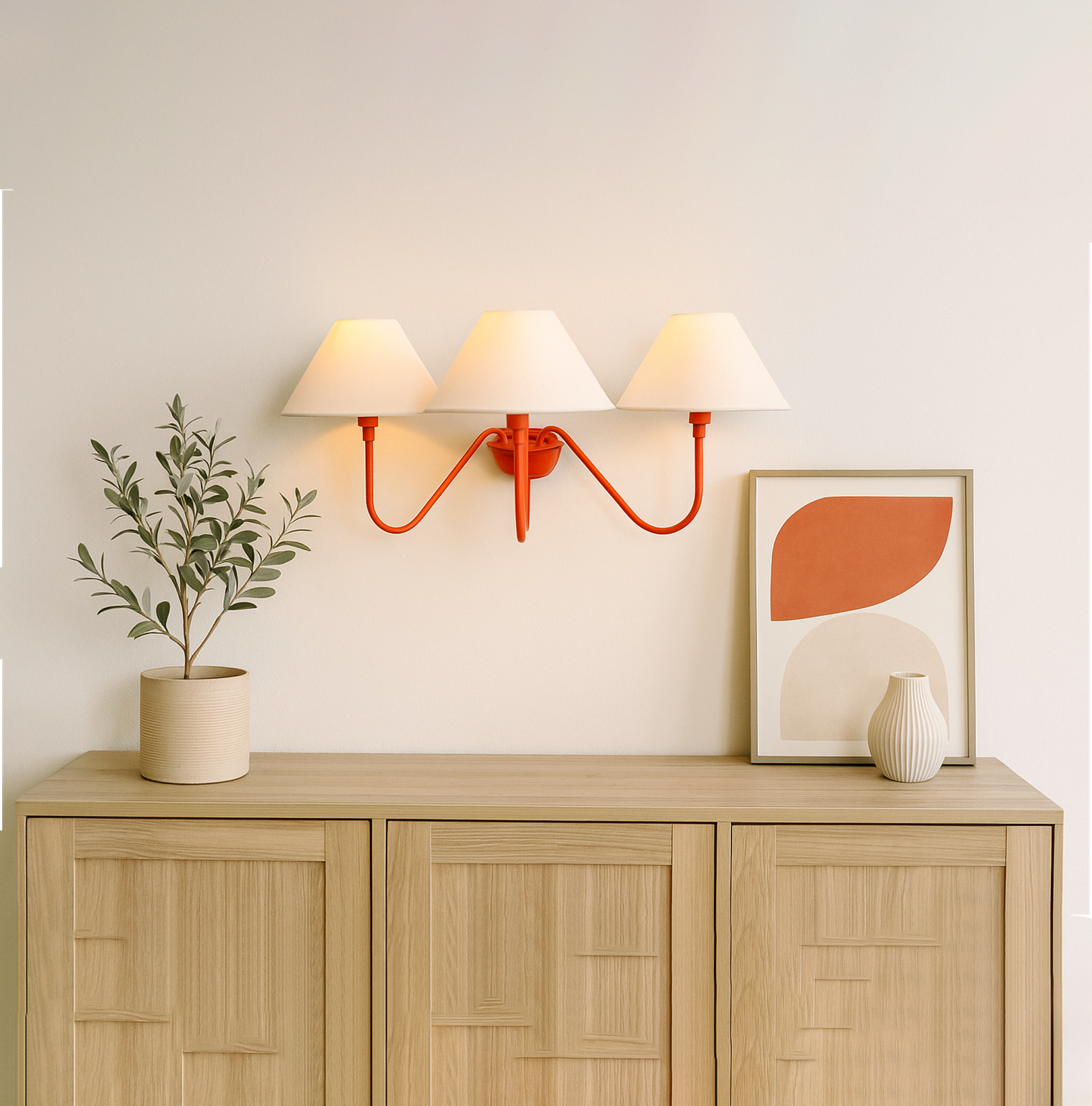 <h3 style="box-sizing: border-box; margin: 0px 0px 20px; line-height: 1.5em; font-size: 17px; font-family: "Open Sans", sans-serif; padding: 0px; color: rgb(40, 40, 40); background-color: rgb(255, 255, 255);"><span style="box-sizing: border-box;"><span style="box-sizing: border-box; color: rgb(34, 34, 34); font-family: "Graphik Webfont", -apple-system, "Helvetica Neue", "Droid Sans", Arial, "sans-serif"; font-size: 16px; letter-spacing: 0.16px;">Introducing our modern RED 3 Lights Wall Lamp, a stunning addition to any space. This wall lamp combines elegance and functionality, providing both ambient and task lighting. The sleek design features five lights, creating a warm and inviting atmosphere. Crafted with attention to detail, the gold finish adds a touch of sophistication to any room. Illuminate your space with style and grace with our modern gold wall lamp.</span></span></h3>