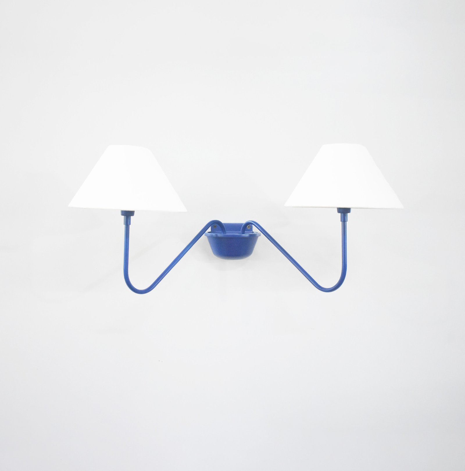 Introducing our exquisite wall lamp, a stunning addition to your home decor. With its sleek Blue color finish, this lamp exudes a sense of contemporary elegance that will enhance any space. The striking design, reminiscent of a delicate two branches, adds a touch of nature-inspired beauty to your walls. Its unique shape, gives it a charming and playful aesthetic that will surely catch the eye of your guests.