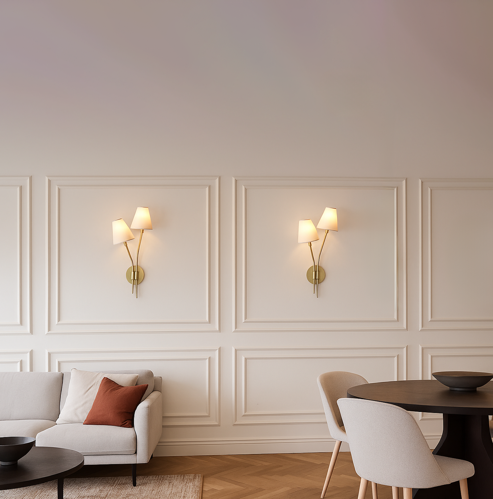 <h3 style="font-weight: normal; line-height: 1.2em; color: rgb(51, 51, 51); font-family: sans-serif, Arial, Verdana, "Trebuchet MS";">Introducing our exquisite wall lamp, a stunning addition to your home decor. With its sleek Golden color finish, this lamp exudes a sense of contemporary elegance that will enhance any space. The striking design, reminiscent of a delicate two branches, adds a touch of nature-inspired beauty to your walls. Its unique shape, gives it a charming and playful aesthetic that will surely catch the eye of your guests.</h3>