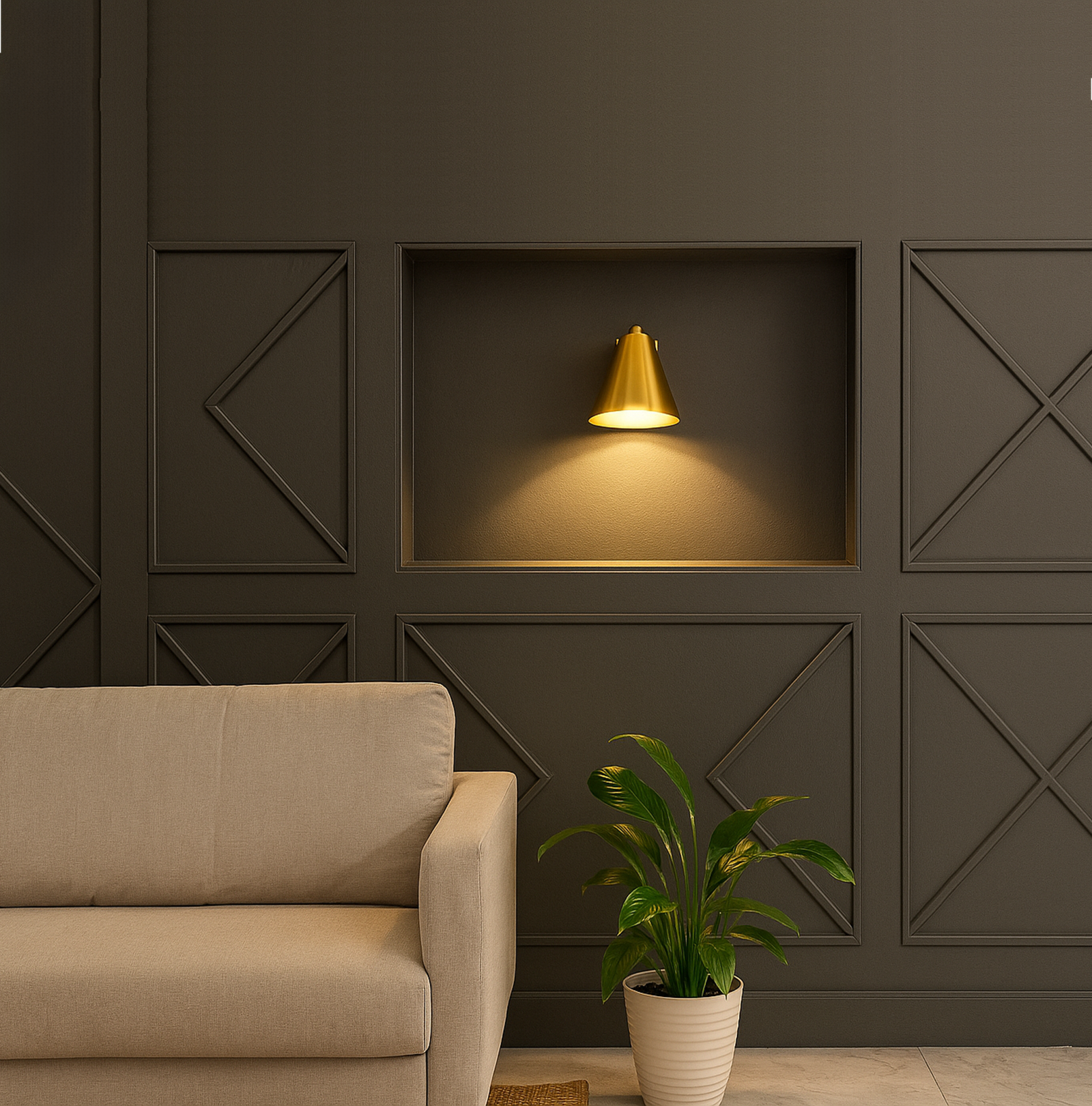 <h3 style="font-weight: normal; line-height: 1.2em; color: rgb(51, 51, 51); font-family: sans-serif, Arial, Verdana, "Trebuchet MS";">Introducing our exquisite wall lamp, a stunning addition to your home decor. With its sleek Golden color finish, this lamp exudes a sense of contemporary elegance that will enhance any space. The striking design, reminiscent of a delicate two branches, adds a touch of nature-inspired beauty to your walls. Its unique shape, gives it a charming and playful aesthetic that will surely catch the eye of your guests.</h3>