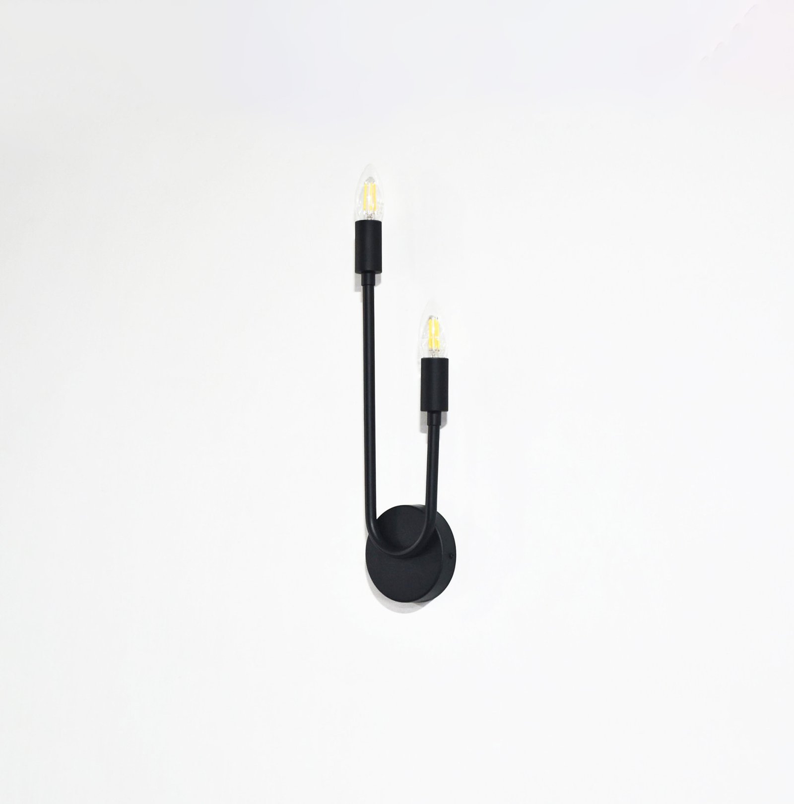 <h3 style="font-weight: normal; line-height: 1.2em; color: rgb(51, 51, 51); font-family: sans-serif, Arial, Verdana, "Trebuchet MS"; background-color: rgb(255, 255, 255);">Introducing our exquisite wall lamp, a stunning addition to your home decor. With its sleek Matte black color finish, this lamp exudes a sense of contemporary elegance that will enhance any space. The striking design, reminiscent of a delicate two branches, adds a touch of nature-inspired beauty to your walls. Its unique shape, gives it a charming and playful aesthetic that will surely catch the eye of your guests.</h3>
