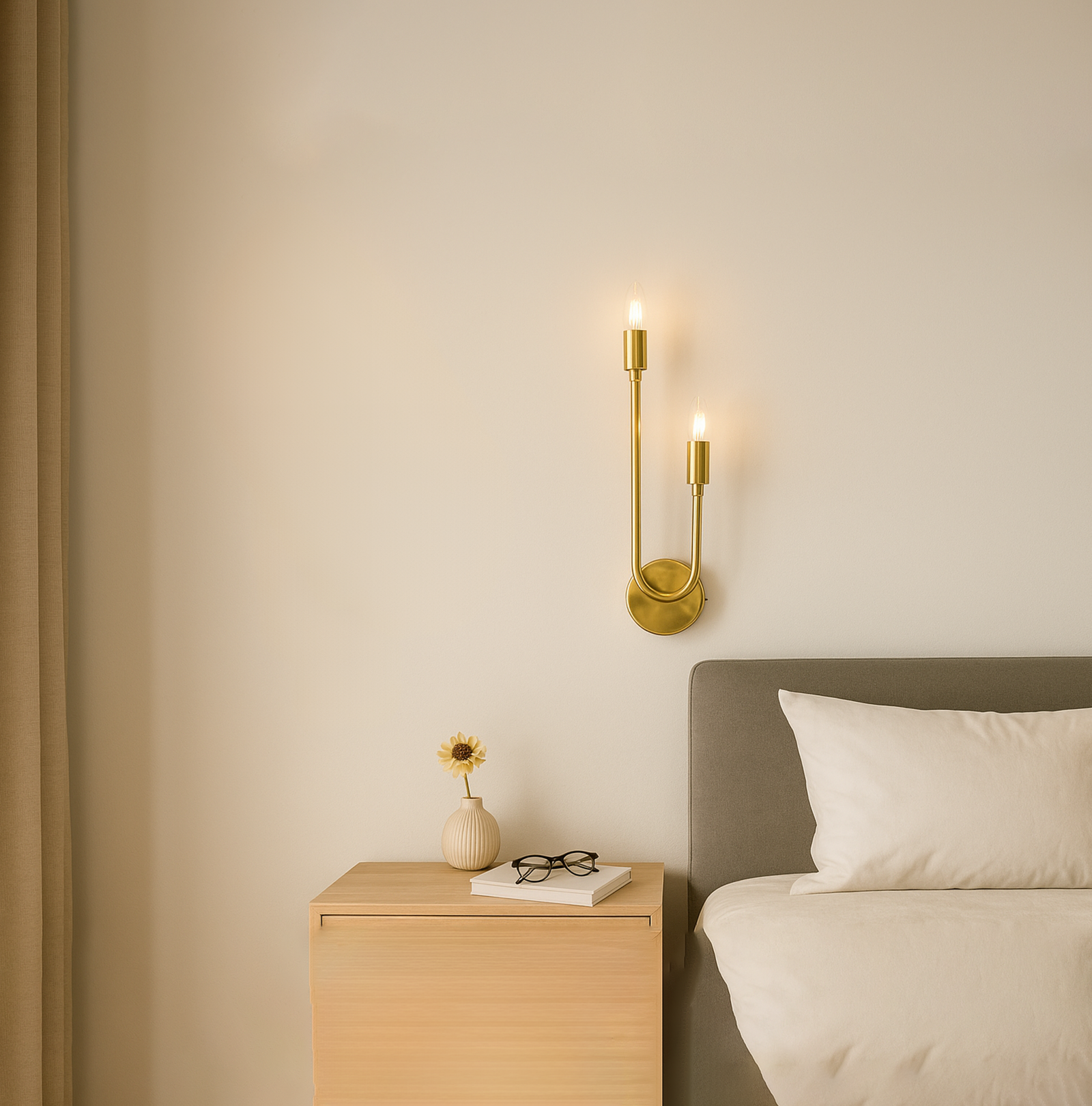 <h3 style="font-weight: normal; line-height: 1.2em; color: rgb(51, 51, 51); font-family: sans-serif, Arial, Verdana, "Trebuchet MS";">Introducing our exquisite wall lamp, a stunning addition to your home decor. With its sleek Golden color finish, this lamp exudes a sense of contemporary elegance that will enhance any space. The striking design, reminiscent of a delicate two branches, adds a touch of nature-inspired beauty to your walls. Its unique shape, gives it a charming and playful aesthetic that will surely catch the eye of your guests.</h3>