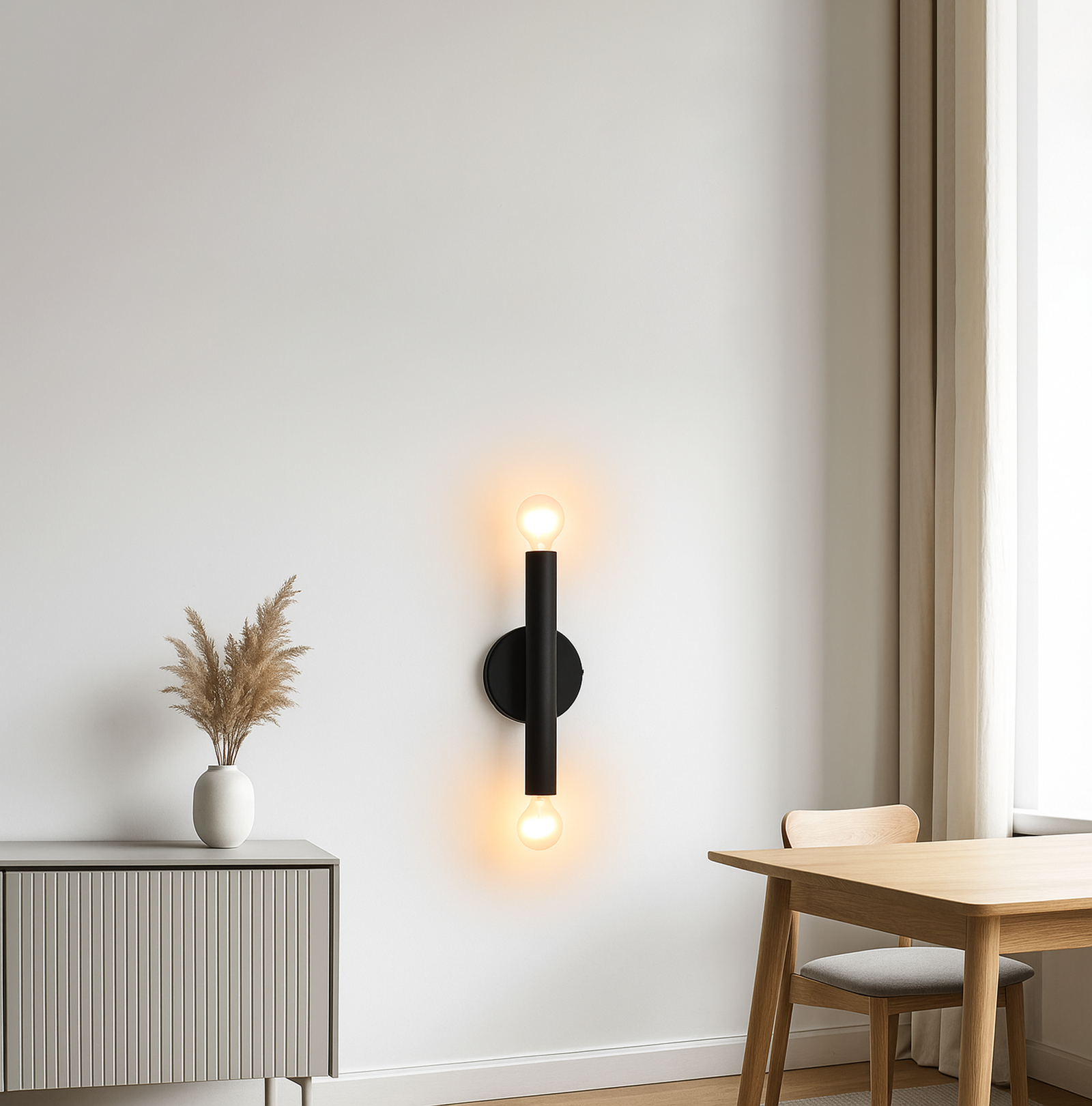 <h3 style="font-weight: normal; line-height: 1.2em; color: rgb(51, 51, 51); font-family: sans-serif, Arial, Verdana, "Trebuchet MS"; background-color: rgb(255, 255, 255);">Introducing our exquisite wall lamp, a stunning addition to your home decor. With its sleek Matte black color finish, this lamp exudes a sense of contemporary elegance that will enhance any space. The striking design, reminiscent of a delicate two branches, adds a touch of nature-inspired beauty to your walls. Its unique shape, gives it a charming and playful aesthetic that will surely catch the eye of your guests.</h3>