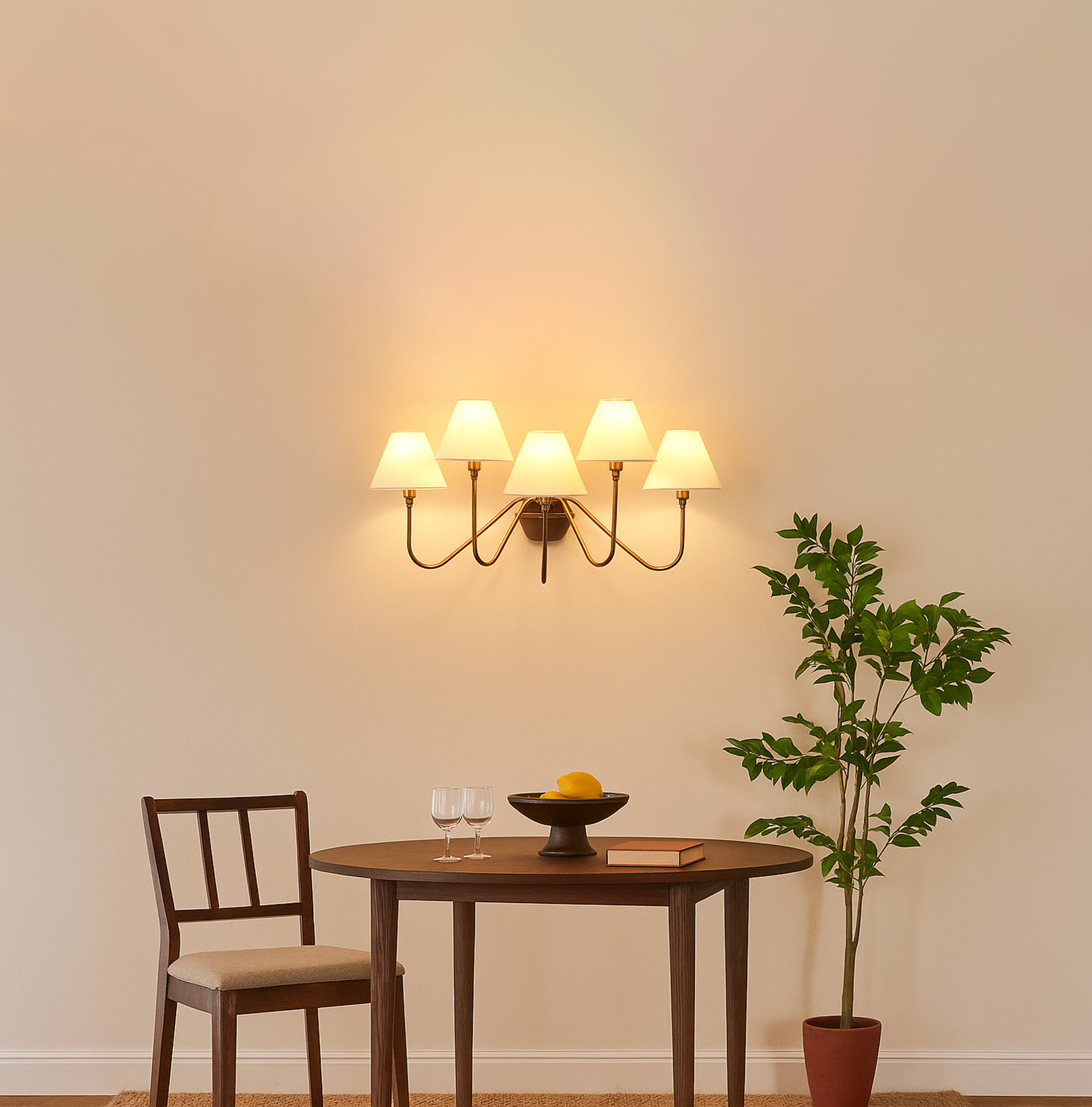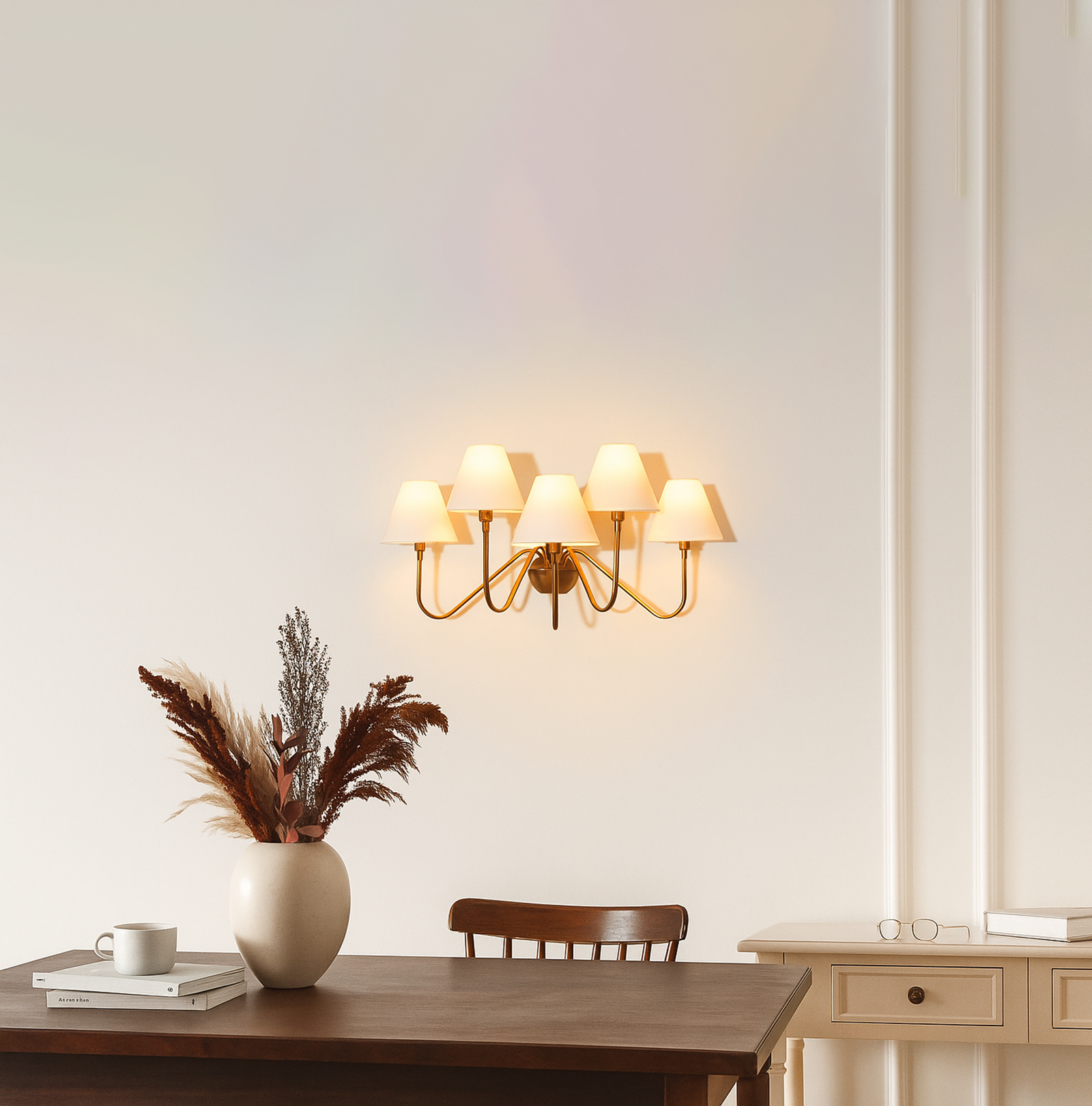 <h3 style="box-sizing: border-box; margin: 0px 0px 20px; line-height: 1.5em; font-size: 17px; font-family: "Open Sans", sans-serif; padding: 0px; color: rgb(40, 40, 40); background-color: rgb(255, 255, 255);"><strong><span style="color: rgb(34, 34, 34); font-family: "Graphik Webfont", -apple-system, "Helvetica Neue", "Droid Sans", Arial, "sans-serif"; font-size: 16px; letter-spacing: 0.16px; background-color: rgb(255, 255, 255);">Introducing our modern gold 5 Lights Wall Lamp, a stunning addition to any space. This wall lamp combines elegance and functionality, providing both ambient and task lighting. The sleek design features five lights, creating a warm and inviting atmosphere. Crafted with attention to detail, the gold finish adds a touch of sophistication to any room. Illuminate your space with style and grace with our modern gold wall lamp.</span></strong></h3>