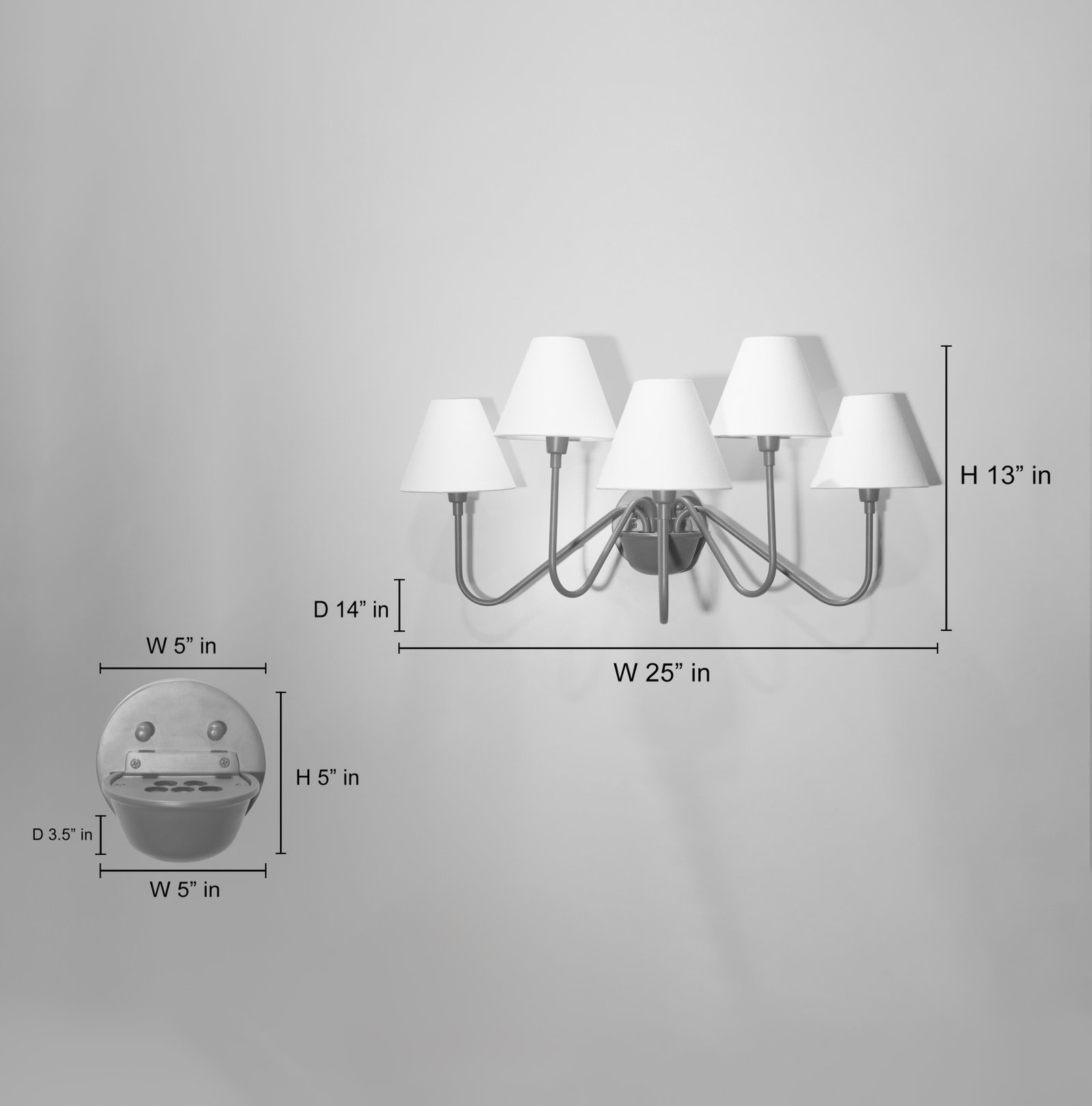 <h3 style="box-sizing: border-box; margin: 0px 0px 20px; line-height: 1.5em; font-size: 17px; font-family: "Open Sans", sans-serif; padding: 0px; color: rgb(40, 40, 40); background-color: rgb(255, 255, 255);"><strong><span style="color: rgb(34, 34, 34); font-family: "Graphik Webfont", -apple-system, "Helvetica Neue", "Droid Sans", Arial, "sans-serif"; font-size: 16px; letter-spacing: 0.16px; background-color: rgb(255, 255, 255);">Introducing our modern gold 5 Lights Wall Lamp, a stunning addition to any space. This wall lamp combines elegance and functionality, providing both ambient and task lighting. The sleek design features five lights, creating a warm and inviting atmosphere. Crafted with attention to detail, the gold finish adds a touch of sophistication to any room. Illuminate your space with style and grace with our modern gold wall lamp.</span></strong></h3>