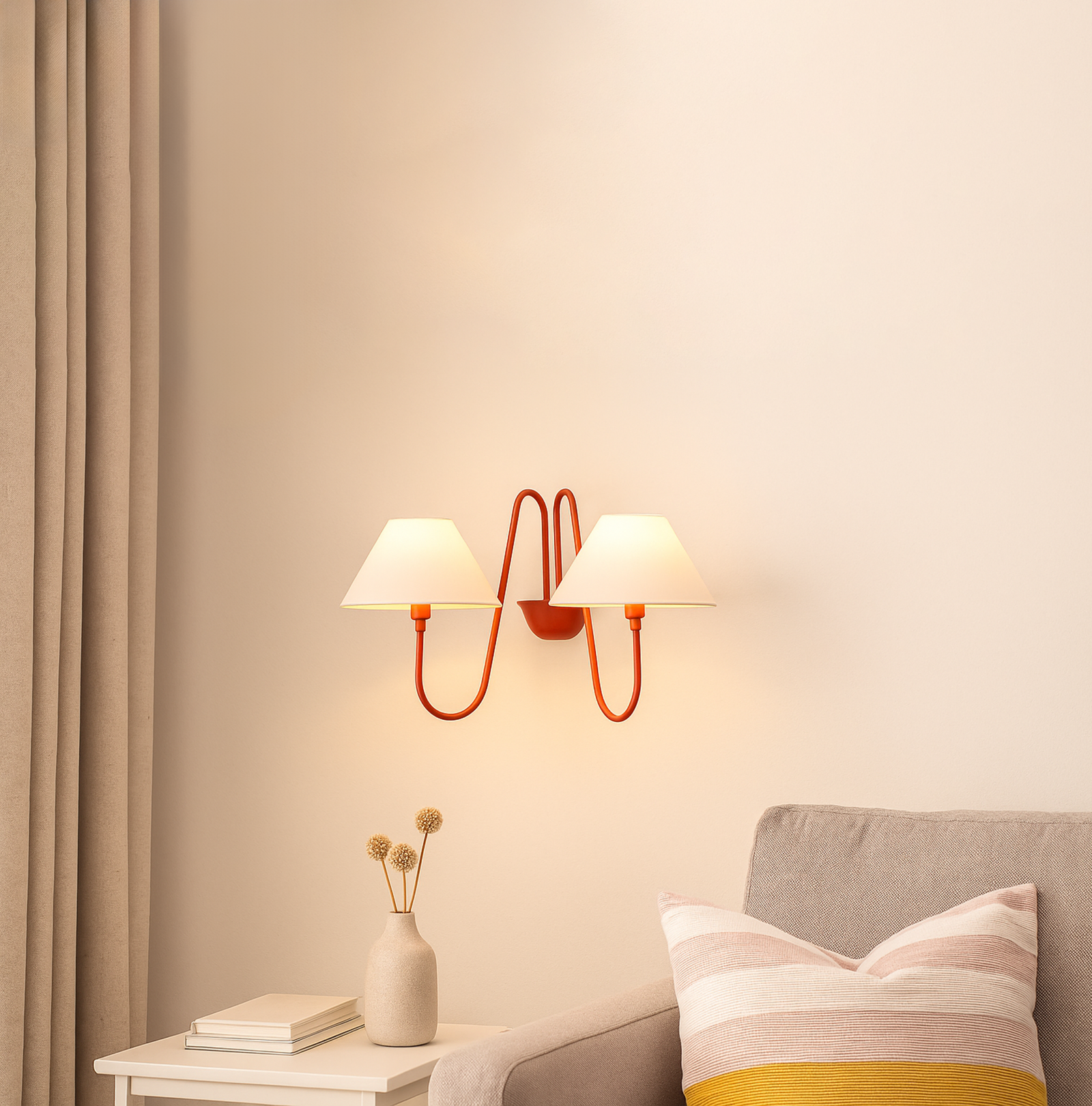 Introducing our exquisite wall lamp, a stunning addition to your home decor. With its sleek red color finish, this lamp exudes a sense of contemporary elegance that will enhance any space. The striking design, reminiscent of a delicate two branches, adds a touch of nature-inspired beauty to your walls. Its unique shape, gives it a charming and playful aesthetic that will surely catch the eye of your guests.