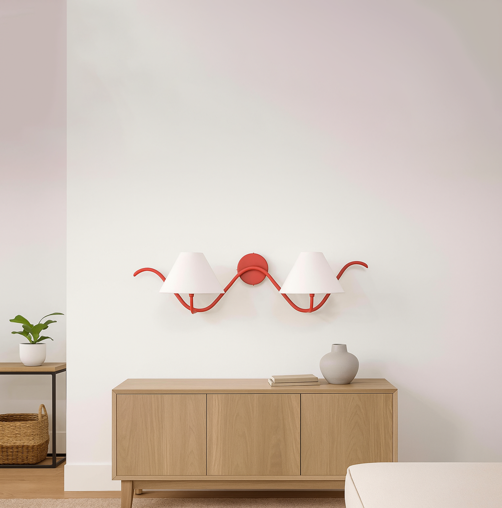 Introducing our exquisite wall lamp, a stunning addition to your home decor. With its sleek Red color finish, this lamp exudes a sense of contemporary elegance that will enhance any space. The striking design, reminiscent of a delicate two branches, adds a touch of nature-inspired beauty to your walls. Its unique shape, gives it a charming and playful aesthetic that will surely catch the eye of your guests.