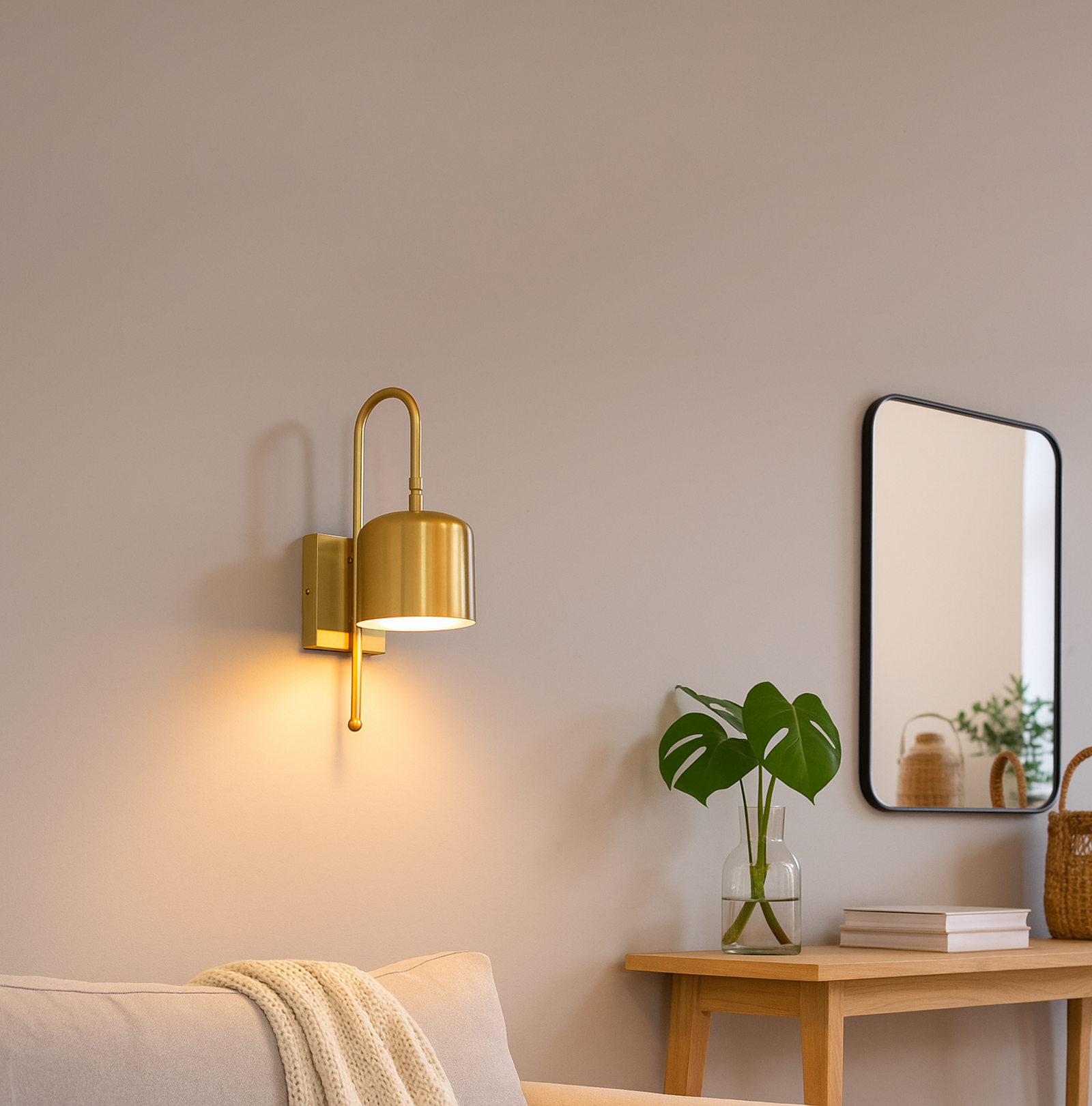 <h3 style="font-weight: normal; line-height: 1.2em; color: rgb(51, 51, 51); font-family: sans-serif, Arial, Verdana, "Trebuchet MS";">Introducing our exquisite wall lamp, a stunning addition to your home decor. With its sleek Golden color finish, this lamp exudes a sense of contemporary elegance that will enhance any space. The striking design, reminiscent of a delicate two branches, adds a touch of nature-inspired beauty to your walls. Its unique shape, gives it a charming and playful aesthetic that will surely catch the eye of your guests.</h3>