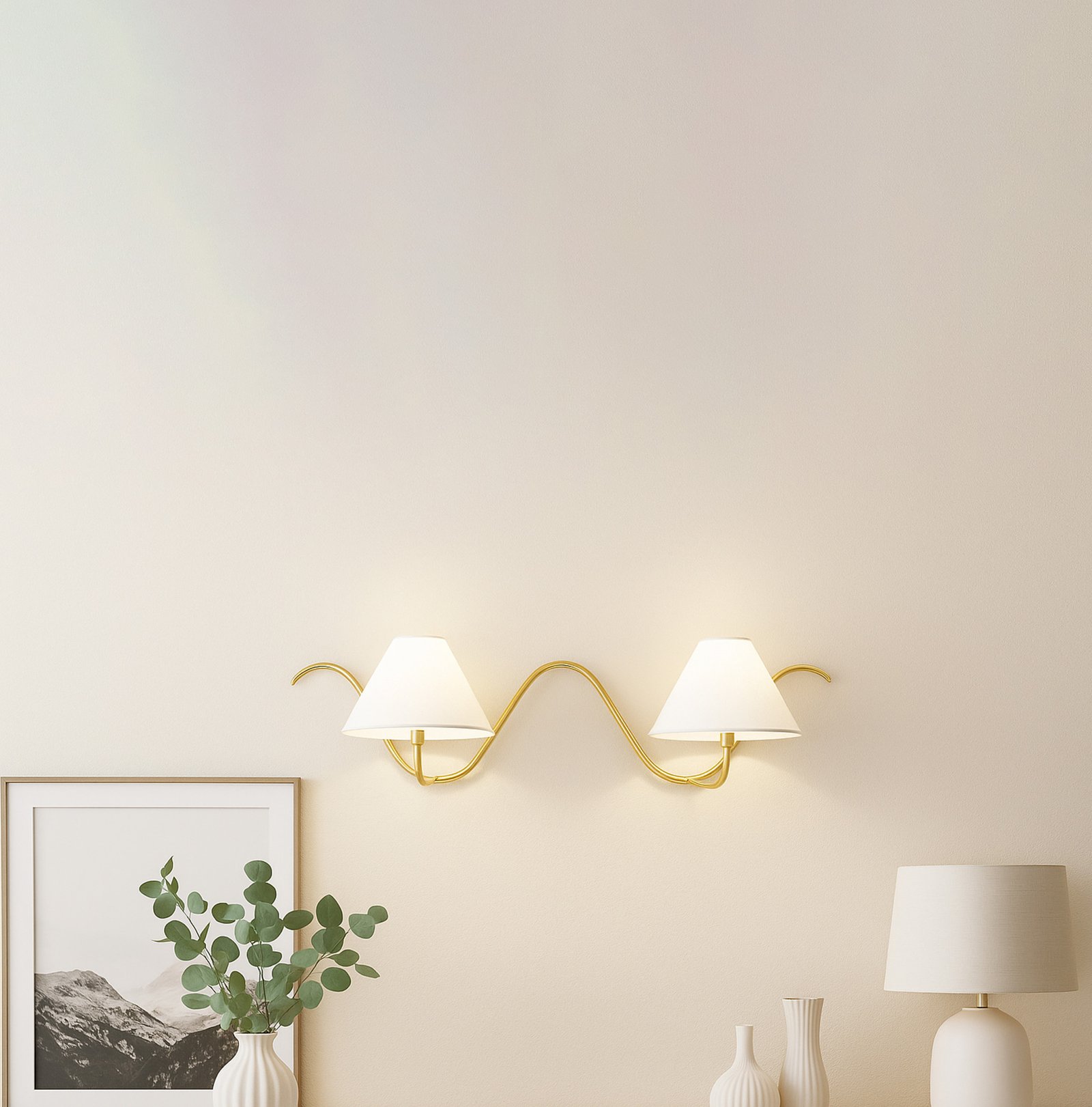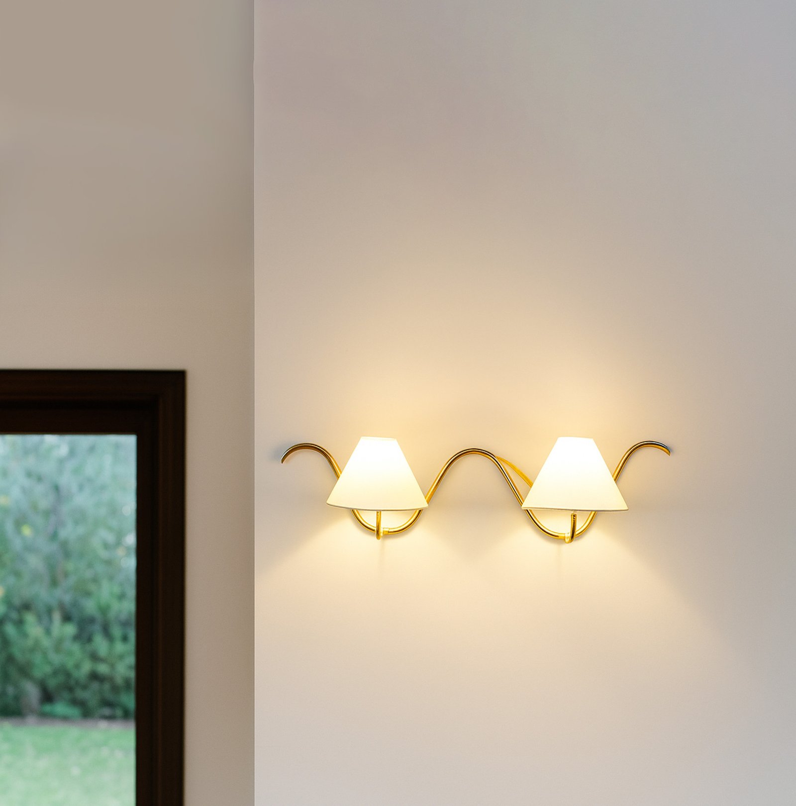 <h3 style="font-weight: normal; line-height: 1.2em; color: rgb(51, 51, 51); font-family: sans-serif, Arial, Verdana, "Trebuchet MS";">Introducing our exquisite wall lamp, a stunning addition to your home decor. With its sleek Golden color finish, this lamp exudes a sense of contemporary elegance that will enhance any space. The striking design, reminiscent of a delicate two branches, adds a touch of nature-inspired beauty to your walls. Its unique shape, gives it a charming and playful aesthetic that will surely catch the eye of your guests.</h3>