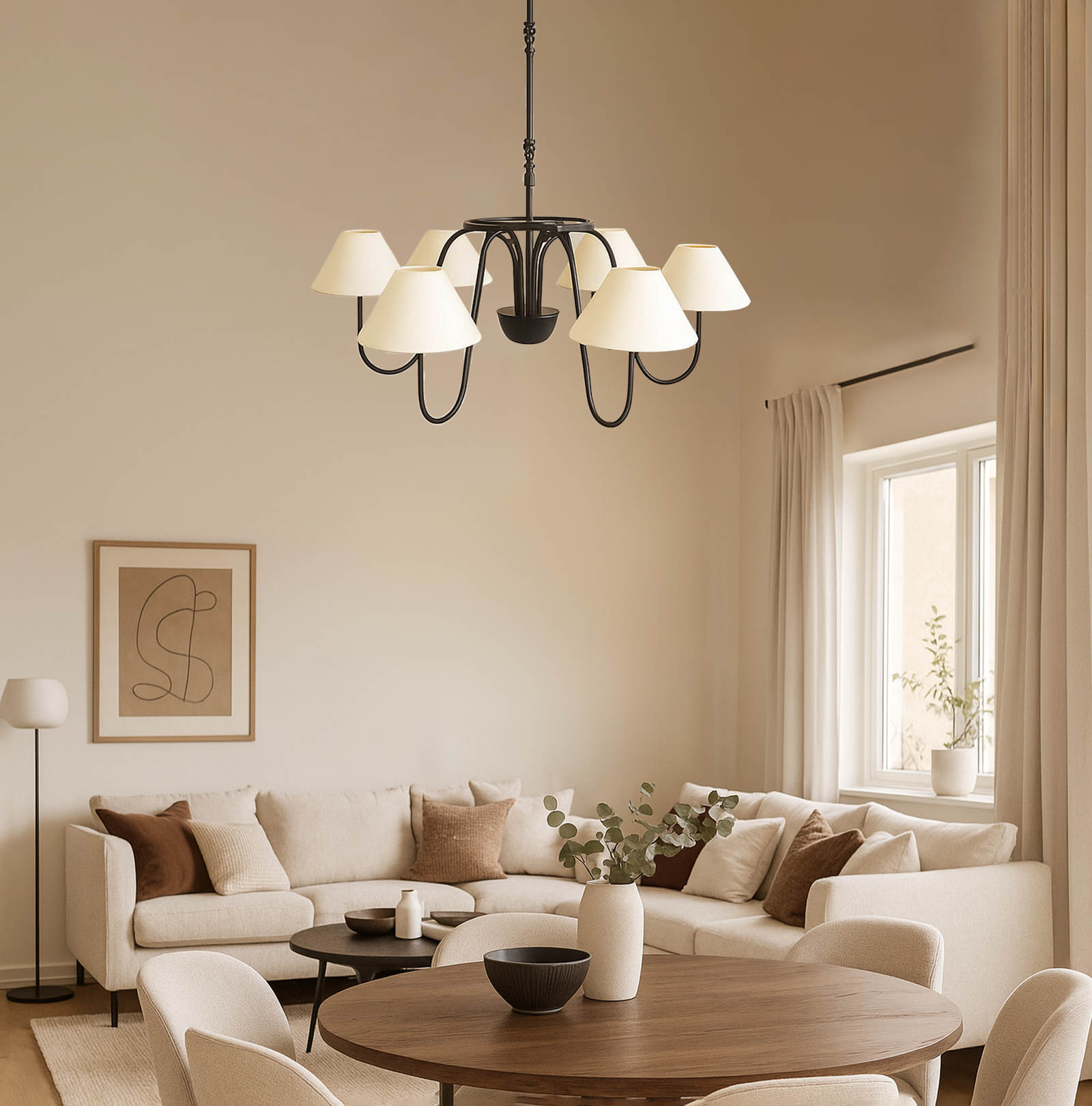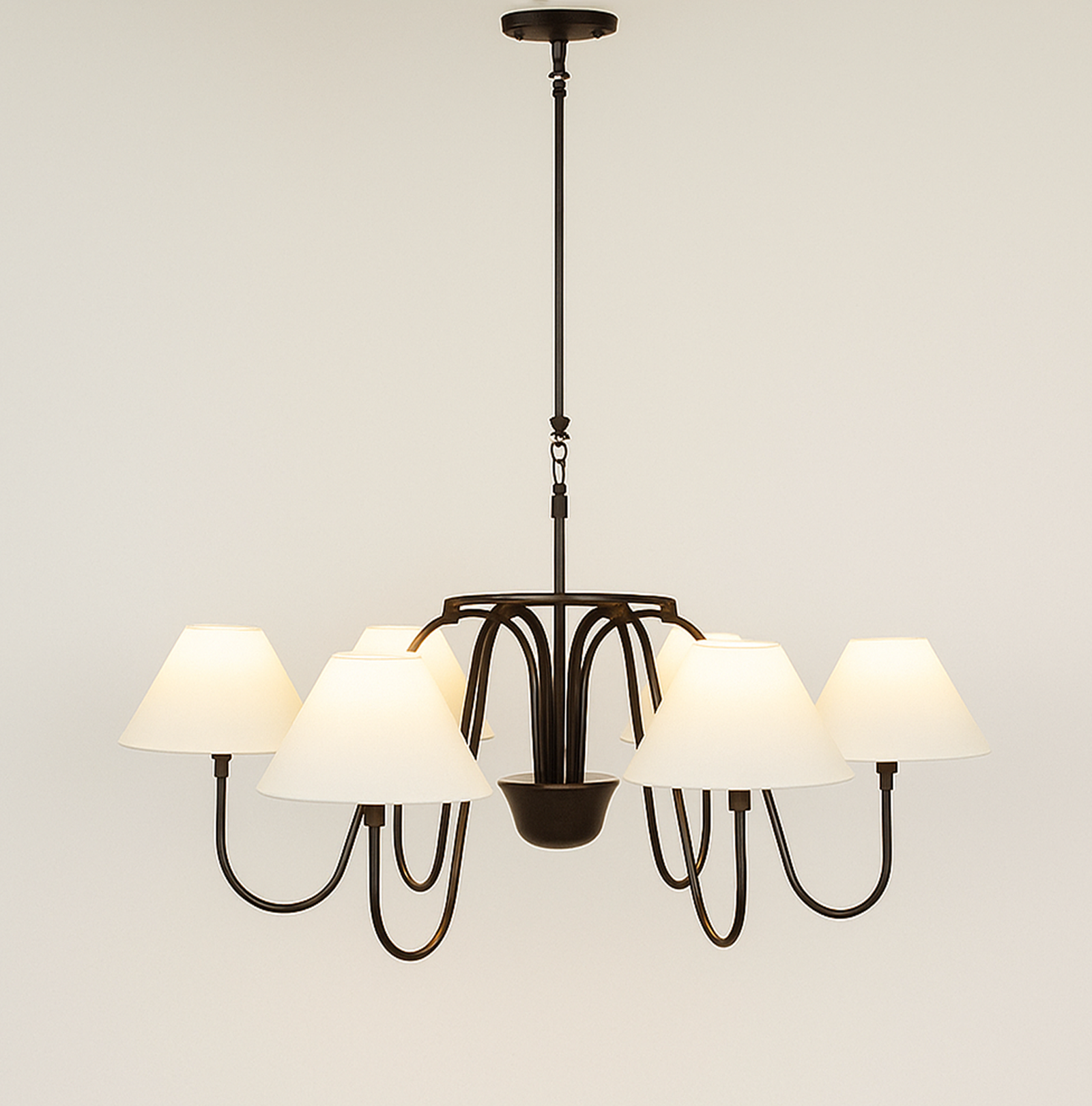 <h3 style="box-sizing: border-box; margin: 0px 0px 20px; line-height: 1.5em; font-size: 17px; font-family: "Open Sans", sans-serif; padding: 0px; color: rgb(40, 40, 40); background-color: rgb(255, 255, 255);"><span style="box-sizing: border-box; font-family: Inter, sans-serif, Zen; font-size: 18px; white-space-collapse: preserve-breaks; background-color: rgb(244, 245, 246);">Illuminate your space with this stunning Black chandelier featuring five elegant white shades. The vibrant red finish adds a bold touch to any room, while the soft white shades diffuse light beautifully, creating a warm and inviting atmosphere. Perfect for dining rooms, living areas, or entryways, this chandelier combines modern design with classic charm, making it a versatile addition to your home decor. Elevate your interior style and enjoy the perfect blend of color and light with this exquisite lighting fixture.</span></h3>