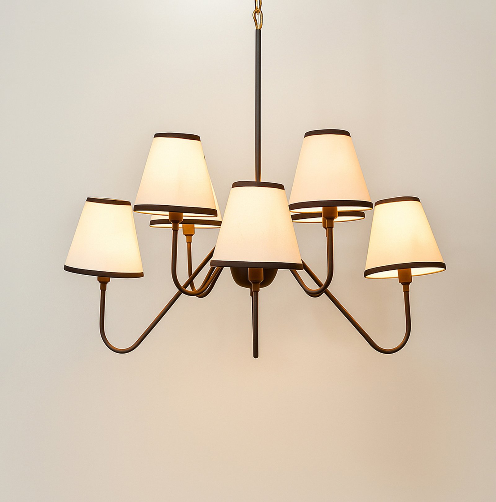 <h3 style="box-sizing: border-box; margin: 0px 0px 20px; line-height: 1.5em; font-size: 17px; font-family: "Open Sans", sans-serif; padding: 0px; color: rgb(40, 40, 40); background-color: rgb(255, 255, 255);"><span style="box-sizing: border-box; font-family: Inter, sans-serif, Zen; font-size: 18px; white-space-collapse: preserve-breaks; background-color: rgb(244, 245, 246);">Illuminate your space with this stunning Black chandelier featuring five elegant white shades. The vibrant red finish adds a bold touch to any room, while the soft white shades diffuse light beautifully, creating a warm and inviting atmosphere. Perfect for dining rooms, living areas, or entryways, this chandelier combines modern design with classic charm, making it a versatile addition to your home decor. Elevate your interior style and enjoy the perfect blend of color and light with this exquisite lighting fixture.</span></h3>