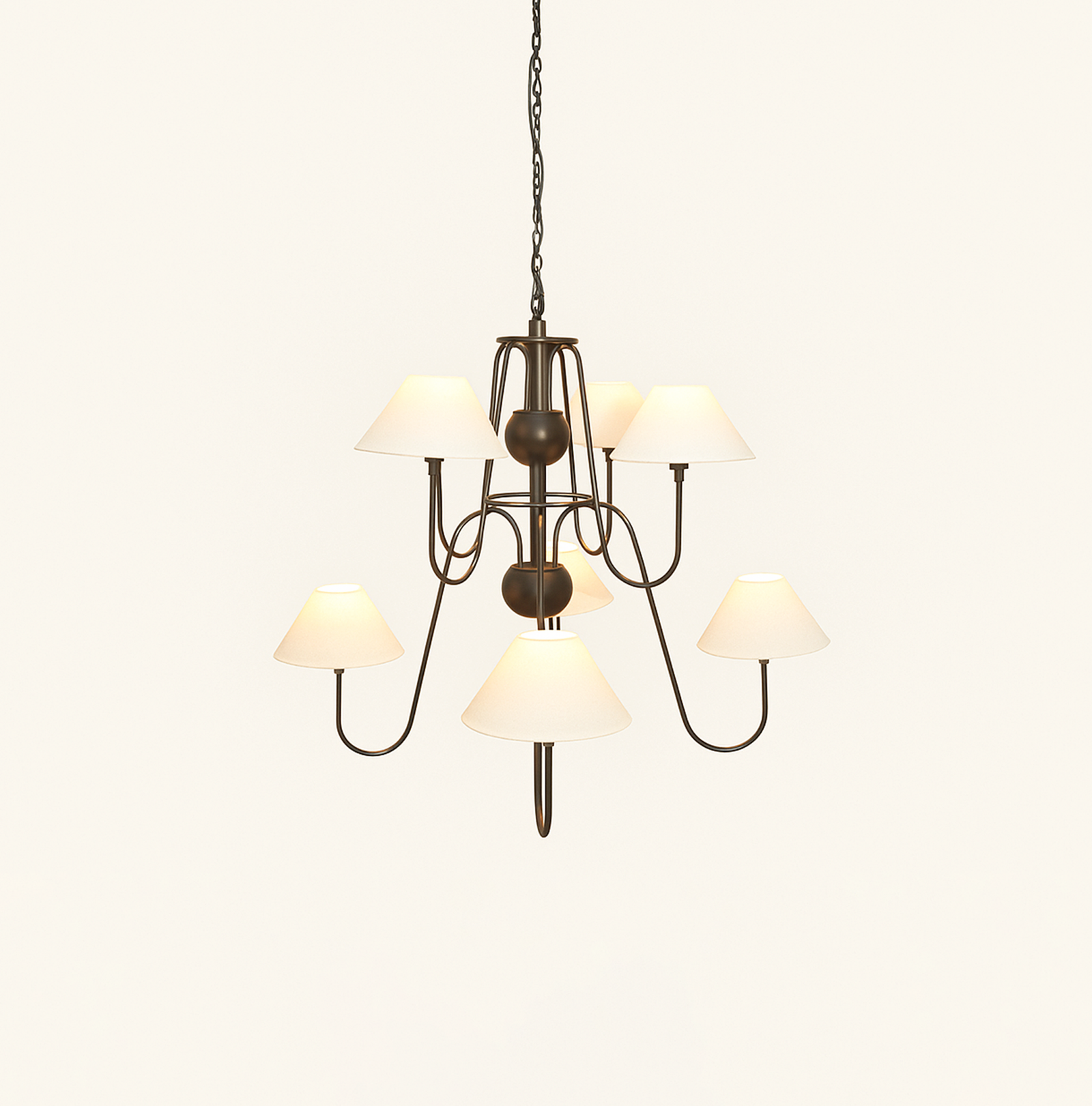<h3 style="box-sizing: border-box; margin: 0px 0px 20px; line-height: 1.5em; font-size: 17px; font-family: "Open Sans", sans-serif; padding: 0px; color: rgb(40, 40, 40); background-color: rgb(255, 255, 255);"><span style="box-sizing: border-box; font-family: Inter, sans-serif, Zen; font-size: 18px; white-space-collapse: preserve-breaks; background-color: rgb(244, 245, 246);">Illuminate your space with this stunning Black chandelier featuring five elegant white shades. The vibrant red finish adds a bold touch to any room, while the soft white shades diffuse light beautifully, creating a warm and inviting atmosphere. Perfect for dining rooms, living areas, or entryways, this chandelier combines modern design with classic charm, making it a versatile addition to your home decor. Elevate your interior style and enjoy the perfect blend of color and light with this exquisite lighting fixture.</span></h3>