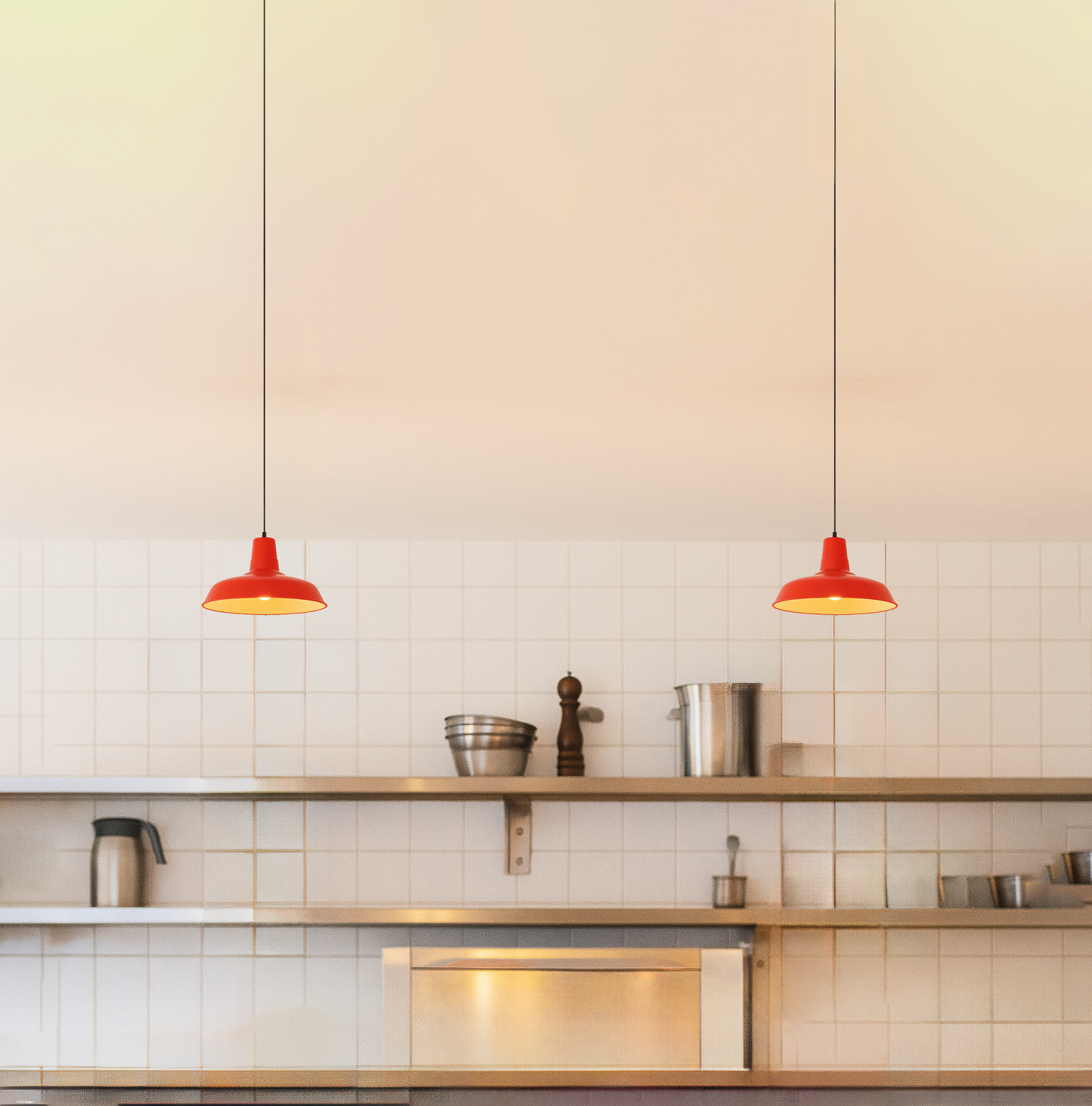 Red Steel Hanging Lamp: Modern Restaurant Pendant red
