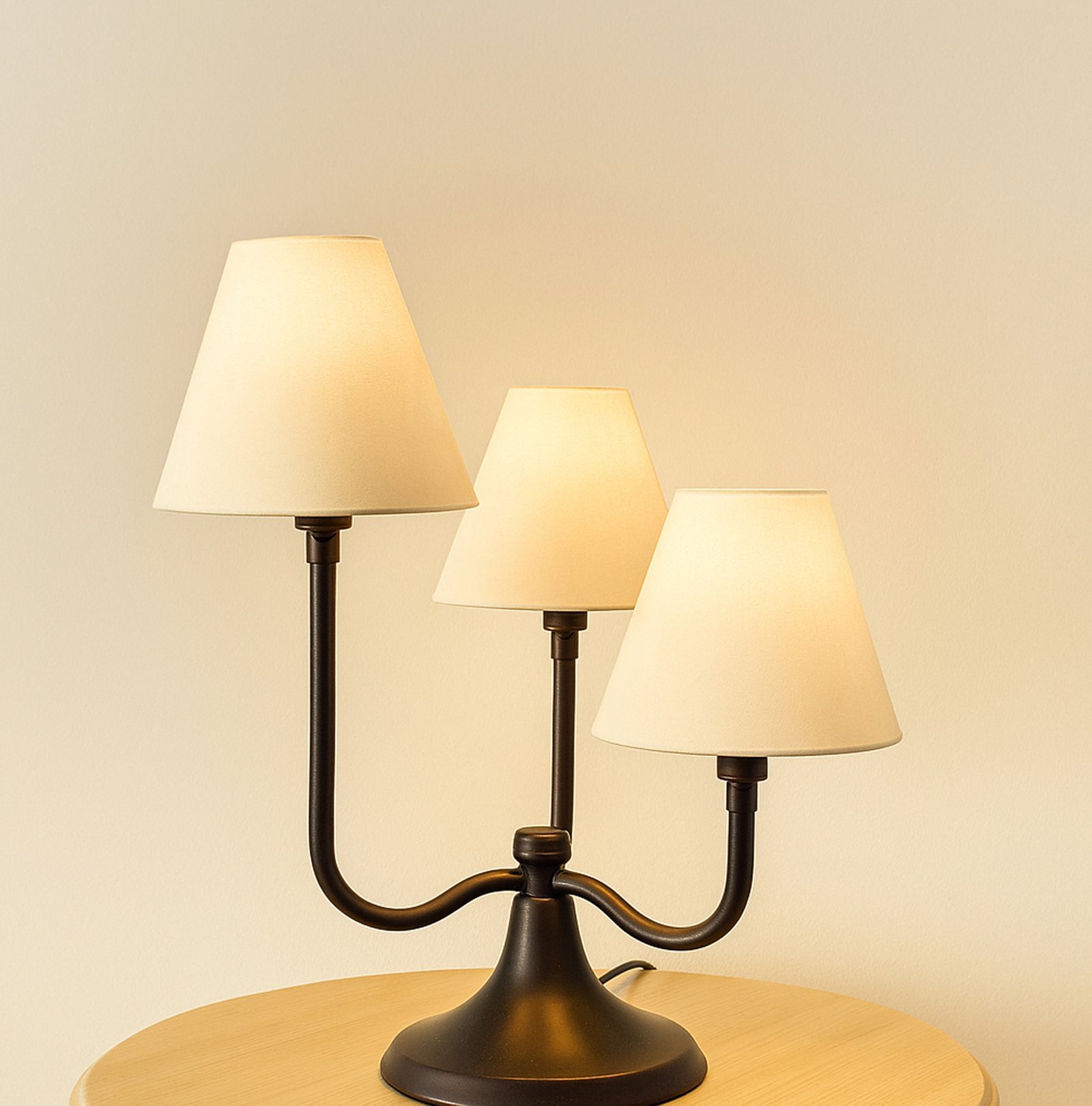 Illuminate your space with our elegant table featuring three stylish lamps, each designed to enhance your home decor while providing ample lighting. The harmonious arrangement of these lamps not only adds a touch of sophistication but also allows for customizable brightness, making it perfect for any occasion—be it a cozy evening or a lively gathering. Crafted with quality materials, this table is both functional and aesthetically pleasing, ensuring it becomes a focal point in your living area. Upgrade your ambiance today with this exquisite lighting solution.