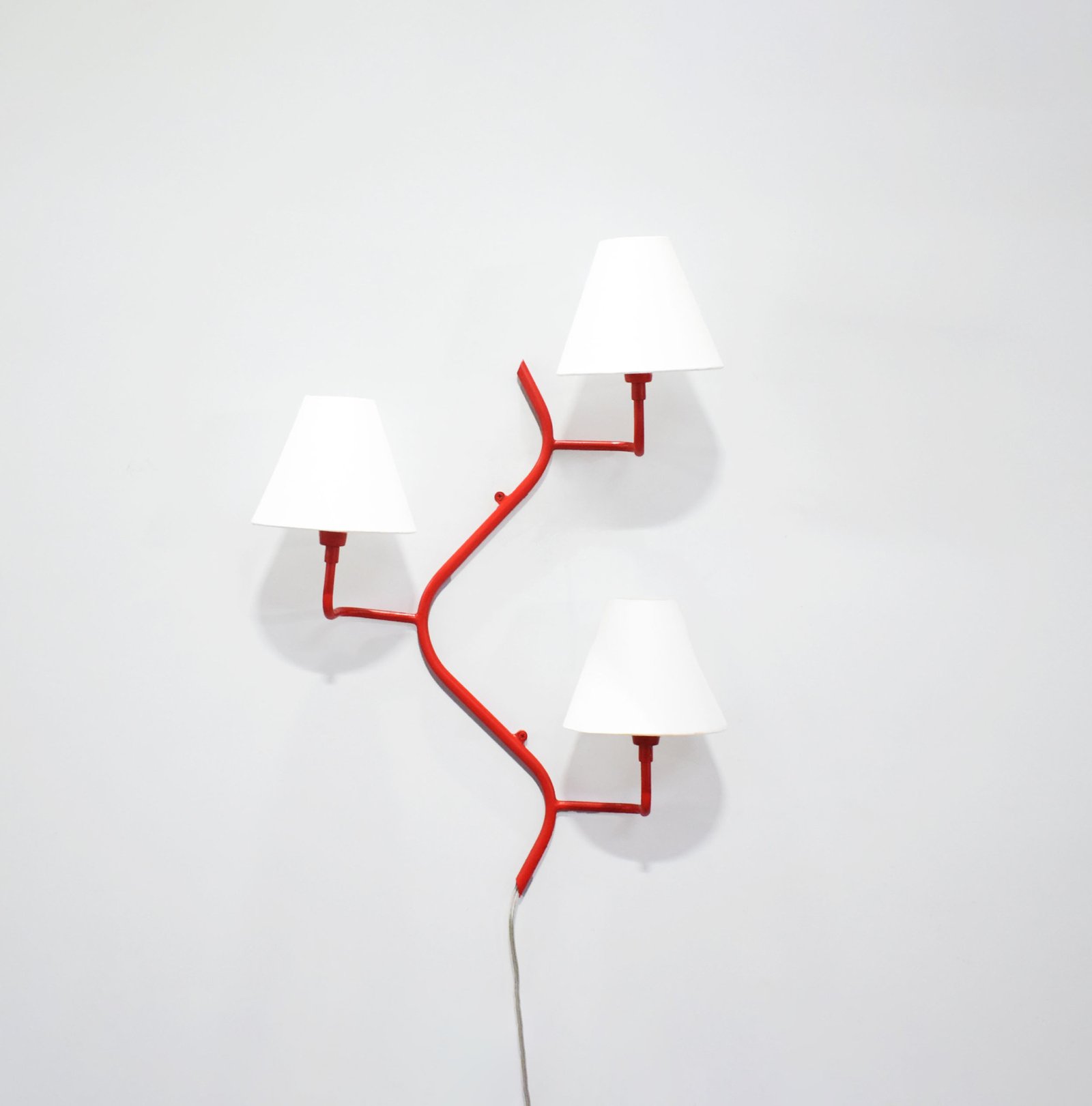<h3 style="box-sizing: border-box; margin: 0px 0px 20px; font-weight: normal; line-height: 1.2em; font-size: 17px; font-family: sans-serif, Arial, Verdana, "Trebuchet MS"; padding: 0px; color: rgb(51, 51, 51); background-color: rgb(255, 255, 255);">Introducing our exquisite wall lamp, a stunning addition to your home decor. With its sleek red color finish, this lamp exudes a sense of contemporary elegance that will enhance any space. The striking design, reminiscent of a delicate one branch design, adds a touch of nature-inspired beauty to your walls. Its unique shape, gives it a charming and playful aesthetic that will surely catch the eye of your guests.</h3>