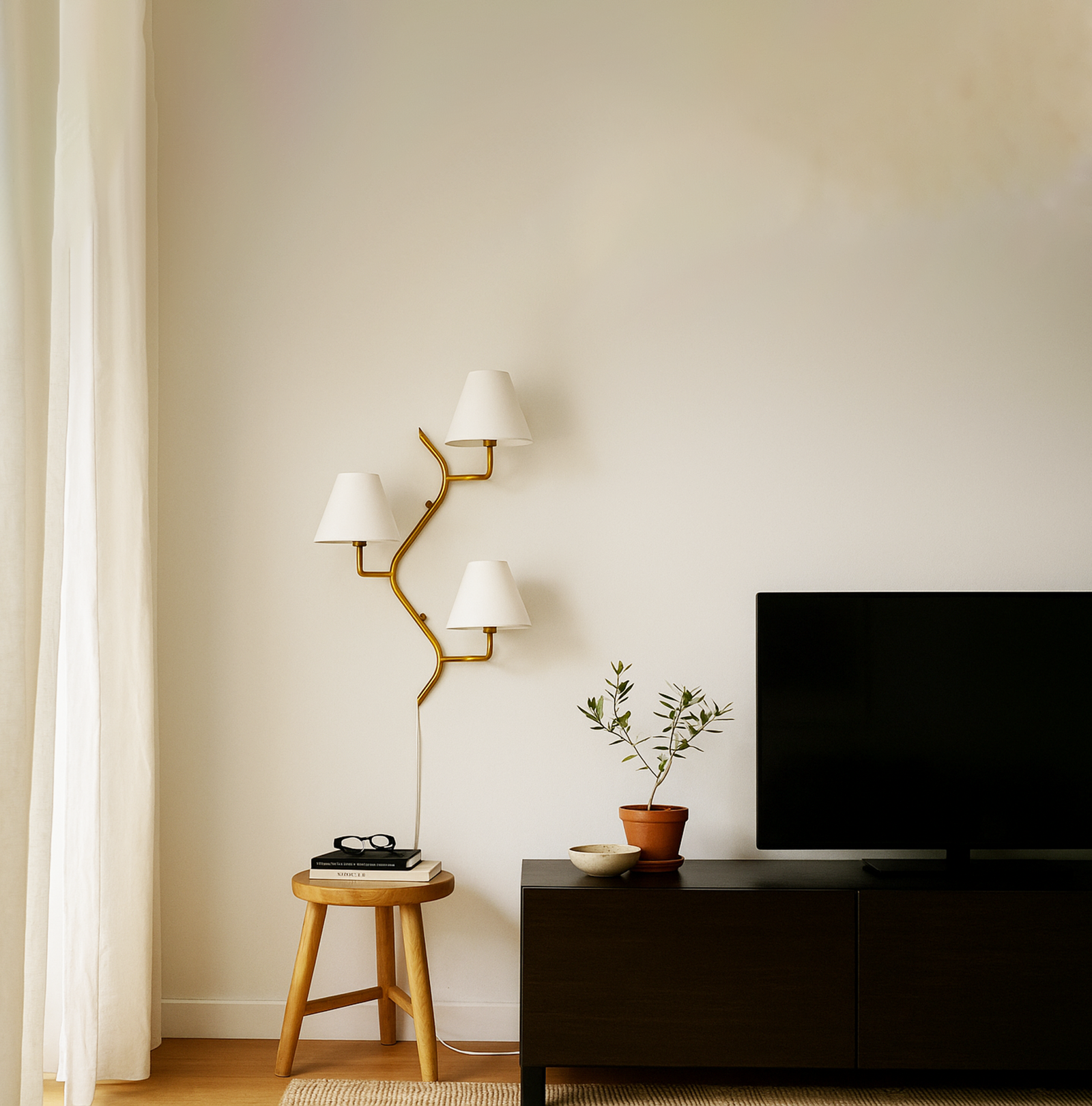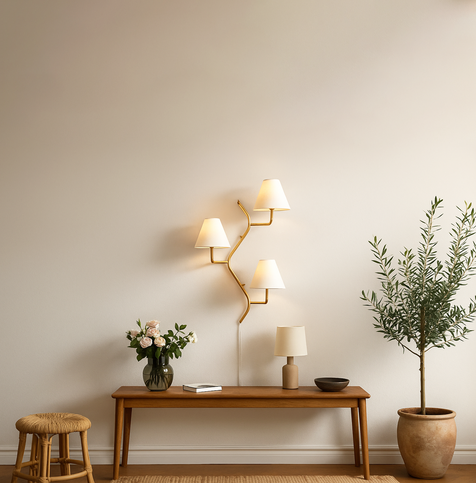 <h3 style="box-sizing: border-box; margin: 0px 0px 20px; font-weight: normal; line-height: 1.2em; font-size: 17px; font-family: sans-serif, Arial, Verdana, "Trebuchet MS"; padding: 0px; color: rgb(51, 51, 51); background-color: rgb(255, 255, 255);">Introducing our exquisite wall lamp, a stunning addition to your home decor. With its sleek golden color finish, this lamp exudes a sense of contemporary elegance that will enhance any space. The striking design, reminiscent of a delicate one branch design, adds a touch of nature-inspired beauty to your walls. Its unique shape, gives it a charming and playful aesthetic that will surely catch the eye of your guests.</h3>