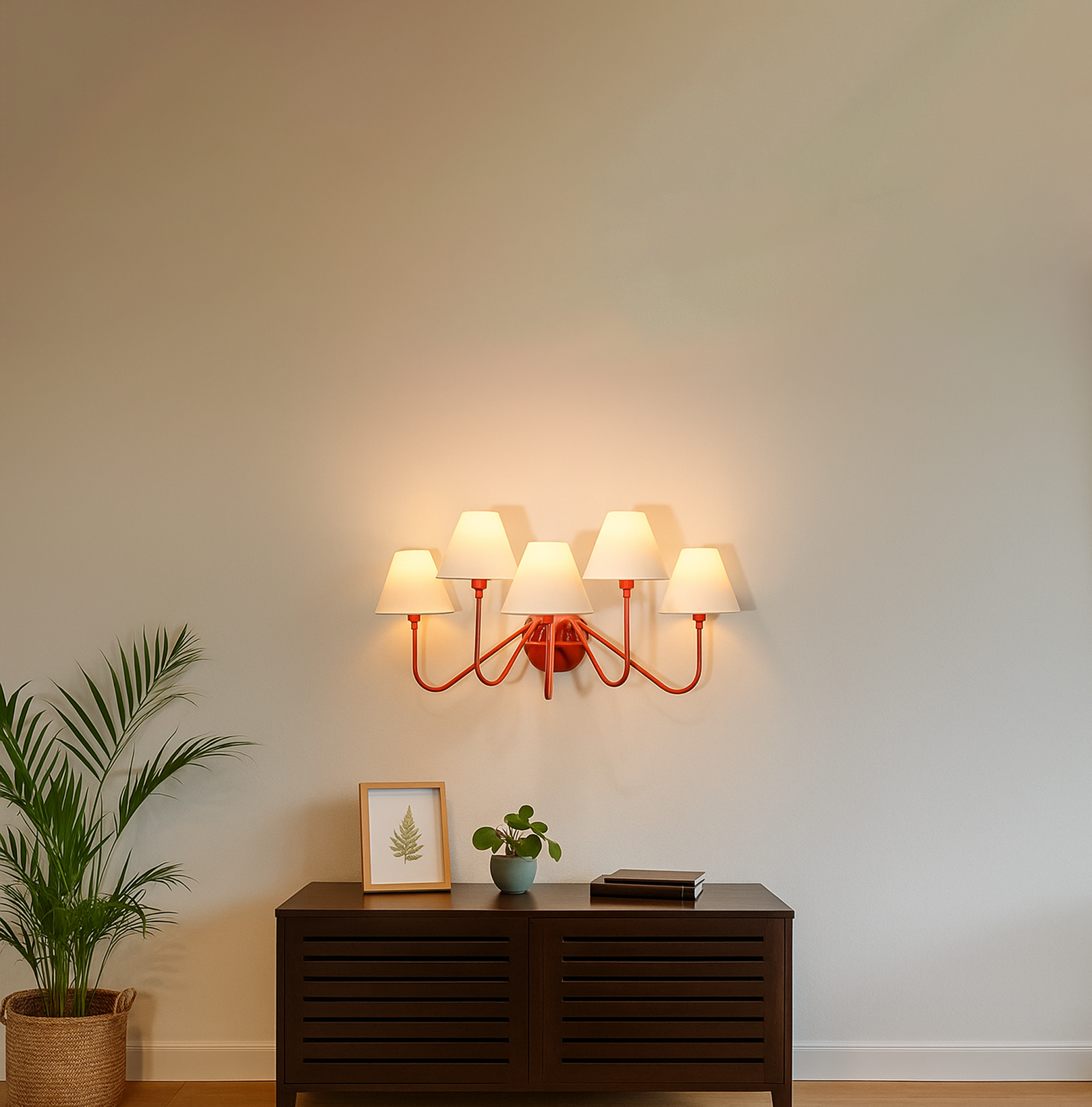 Introducing our exquisite wall lamp, a stunning addition to your home decor. With its sleek red color finish, this lamp exudes a sense of contemporary elegance that will enhance any space. The striking design, reminiscent of a delicate tree branch, adds a touch of nature-inspired beauty to your walls. Its unique shape, resembling a flowerpot, gives it a charming and playful aesthetic that will surely catch the eye of your guests.