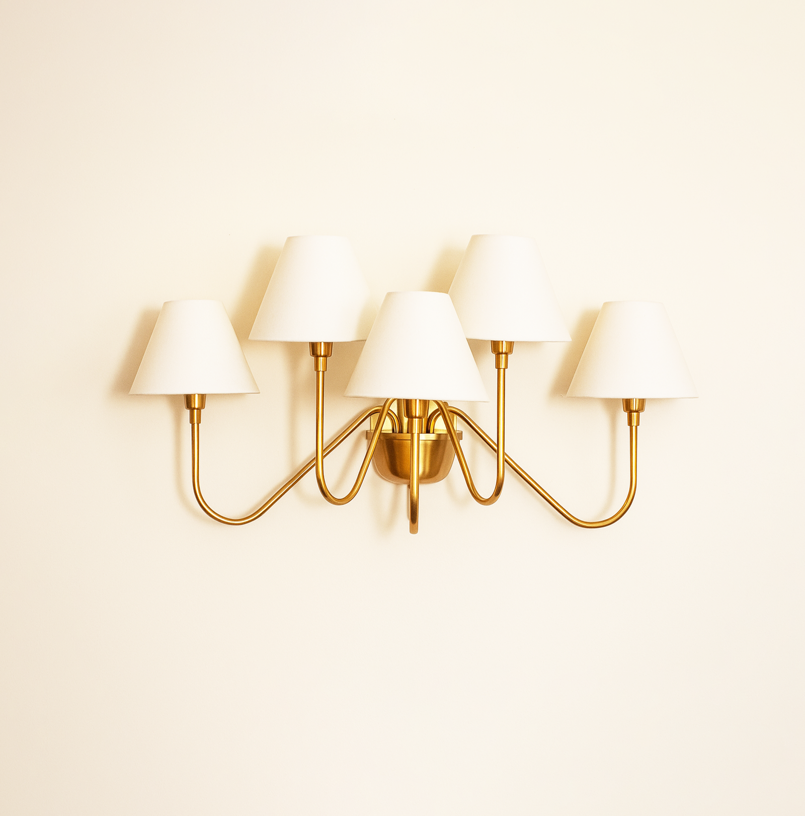 <h3 style="box-sizing: border-box; margin: 0px 0px 20px; line-height: 1.5em; font-size: 17px; font-family: "Open Sans", sans-serif; padding: 0px; color: rgb(40, 40, 40); background-color: rgb(255, 255, 255);"><strong><span style="color: rgb(34, 34, 34); font-family: "Graphik Webfont", -apple-system, "Helvetica Neue", "Droid Sans", Arial, "sans-serif"; font-size: 16px; letter-spacing: 0.16px; background-color: rgb(255, 255, 255);">Introducing our modern gold 5 Lights Wall Lamp, a stunning addition to any space. This wall lamp combines elegance and functionality, providing both ambient and task lighting. The sleek design features five lights, creating a warm and inviting atmosphere. Crafted with attention to detail, the gold finish adds a touch of sophistication to any room. Illuminate your space with style and grace with our modern gold wall lamp.</span></strong></h3>