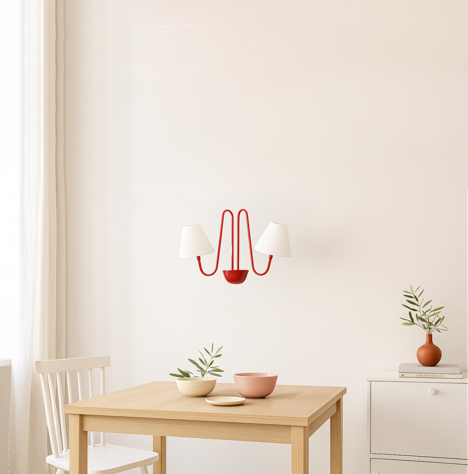 Introducing our exquisite wall lamp, a stunning addition to your home decor. With its sleek Red color finish, this lamp exudes a sense of contemporary elegance that will enhance any space. The striking design, reminiscent of a delicate two branches, adds a touch of nature-inspired beauty to your walls. Its unique shape, gives it a charming and playful aesthetic that will surely catch the eye of your guests.