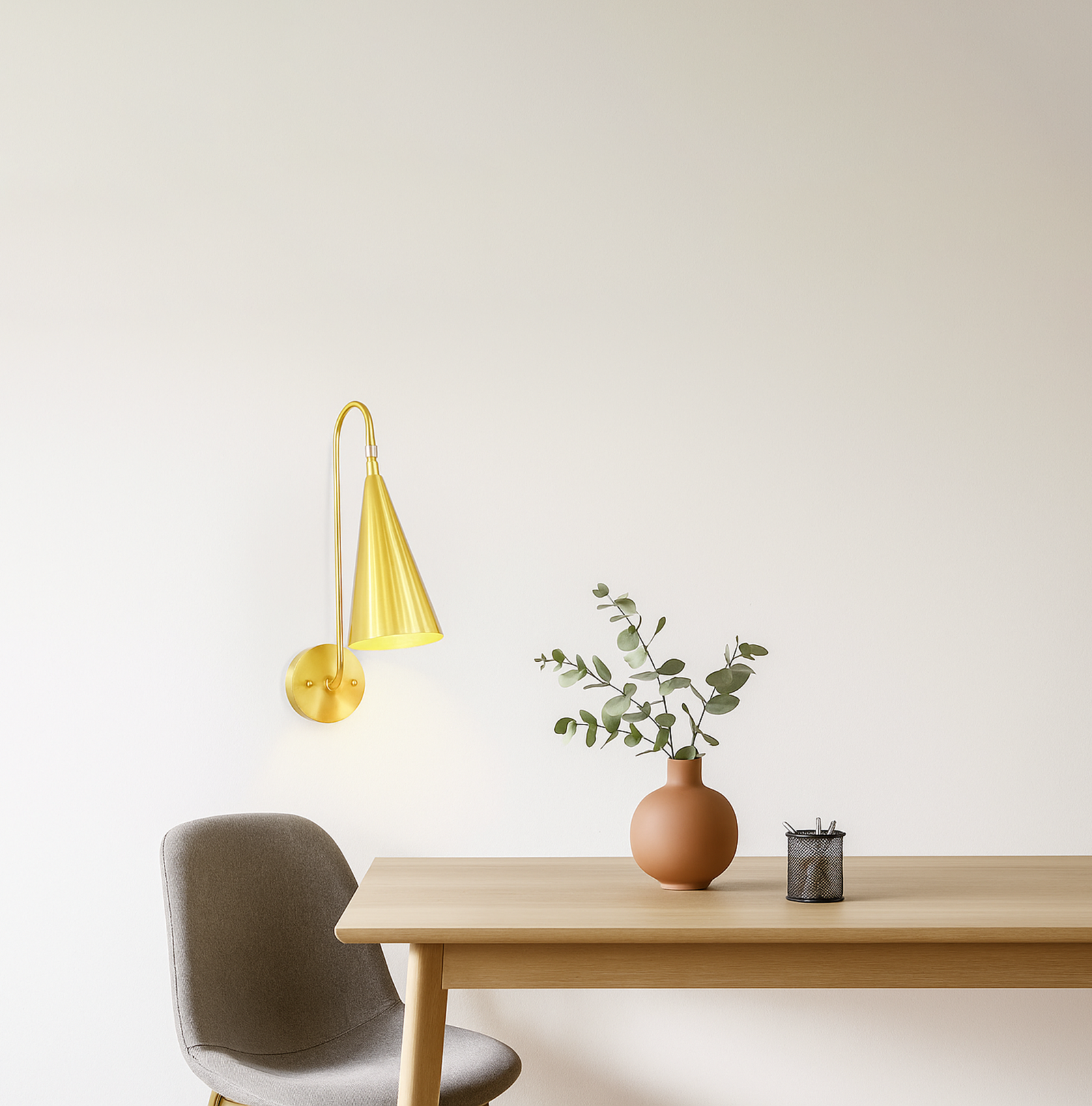 <h3 style="font-weight: normal; line-height: 1.2em; color: rgb(51, 51, 51); font-family: sans-serif, Arial, Verdana, "Trebuchet MS";">Introducing our exquisite wall lamp, a stunning addition to your home decor. With its sleek Golden color finish, this lamp exudes a sense of contemporary elegance that will enhance any space. The striking design, reminiscent of a delicate two branches, adds a touch of nature-inspired beauty to your walls. Its unique shape, gives it a charming and playful aesthetic that will surely catch the eye of your guests.</h3>