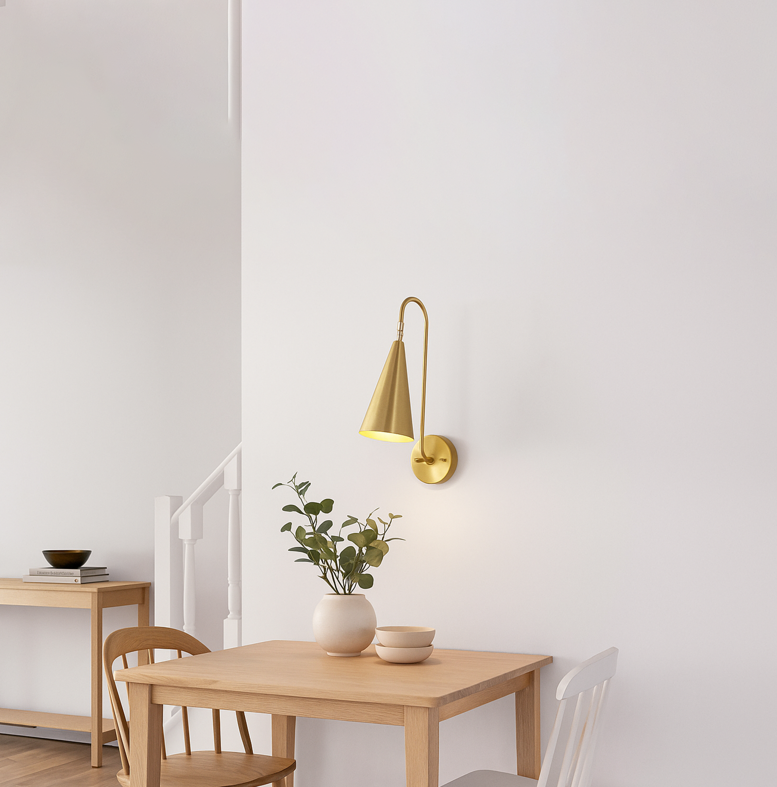 Introducing our exquisite wall lamp, a stunning addition to your home decor. With its sleek golden color finish, this lamp exudes a sense of contemporary elegance that will enhance any space. The striking design, reminiscent of a delicate one branch design, adds a touch of nature-inspired beauty to your walls. Its unique shape, gives it a charming and playful aesthetic that will surely catch the eye of your guests.