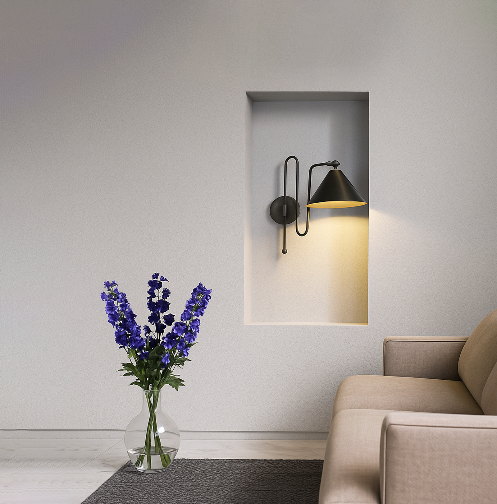 <h3 style="font-weight: normal; line-height: 1.2em; color: rgb(51, 51, 51); font-family: sans-serif, Arial, Verdana, "Trebuchet MS"; background-color: rgb(255, 255, 255);">Introducing our exquisite wall lamp, a stunning addition to your home decor. With its sleek Matte black color finish, this lamp exudes a sense of contemporary elegance that will enhance any space. The striking design, reminiscent of a delicate two branches, adds a touch of nature-inspired beauty to your walls. Its unique shape, gives it a charming and playful aesthetic that will surely catch the eye of your guests.</h3>