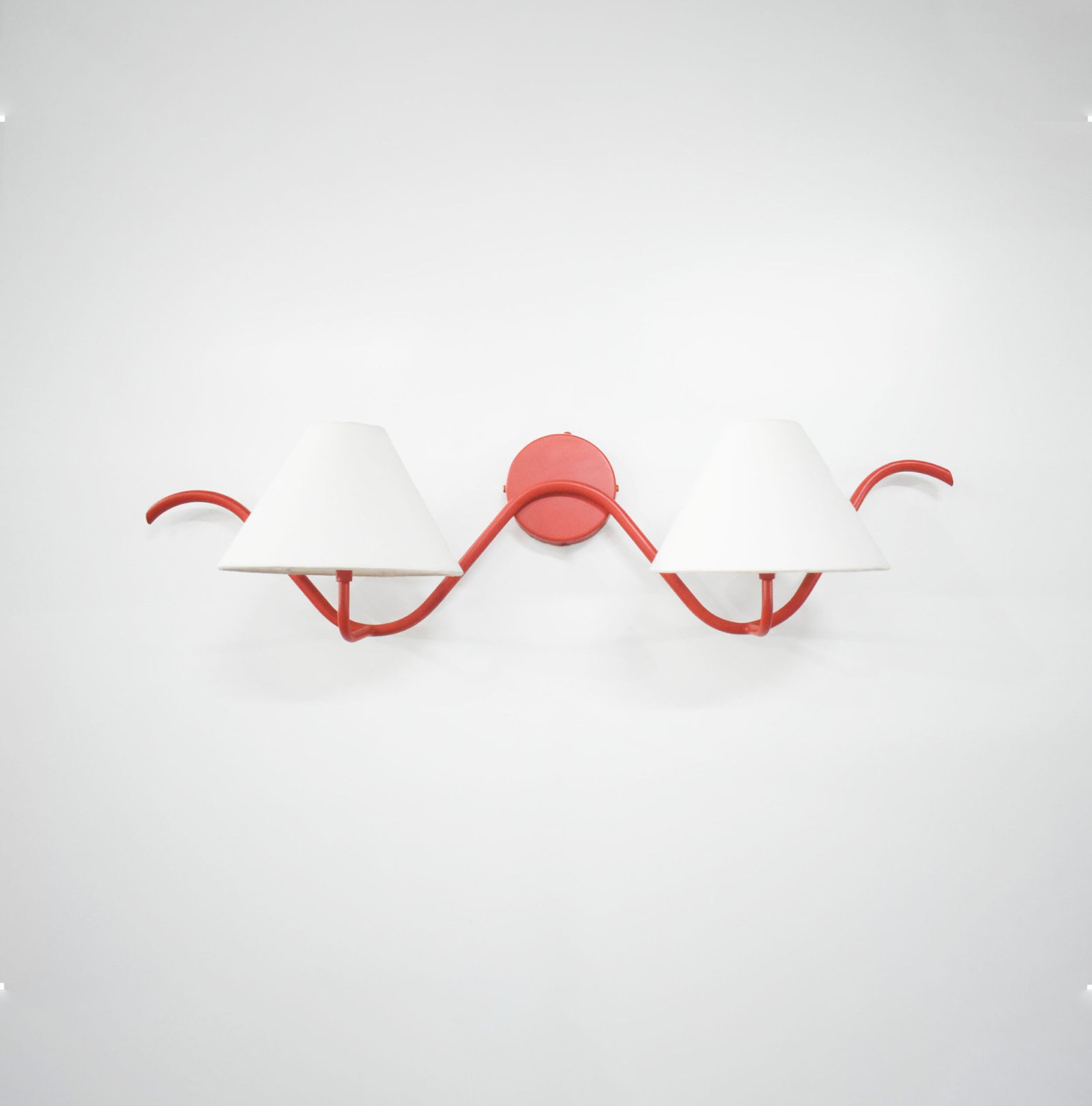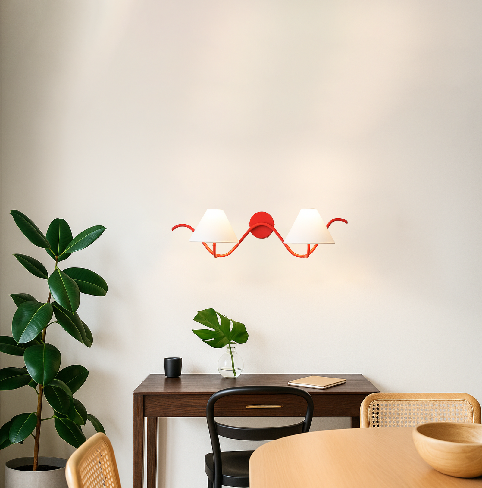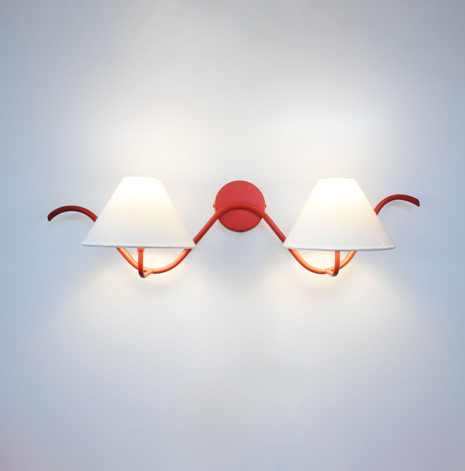 Introducing our exquisite wall lamp, a stunning addition to your home decor. With its sleek Red color finish, this lamp exudes a sense of contemporary elegance that will enhance any space. The striking design, reminiscent of a delicate two branches, adds a touch of nature-inspired beauty to your walls. Its unique shape, gives it a charming and playful aesthetic that will surely catch the eye of your guests.