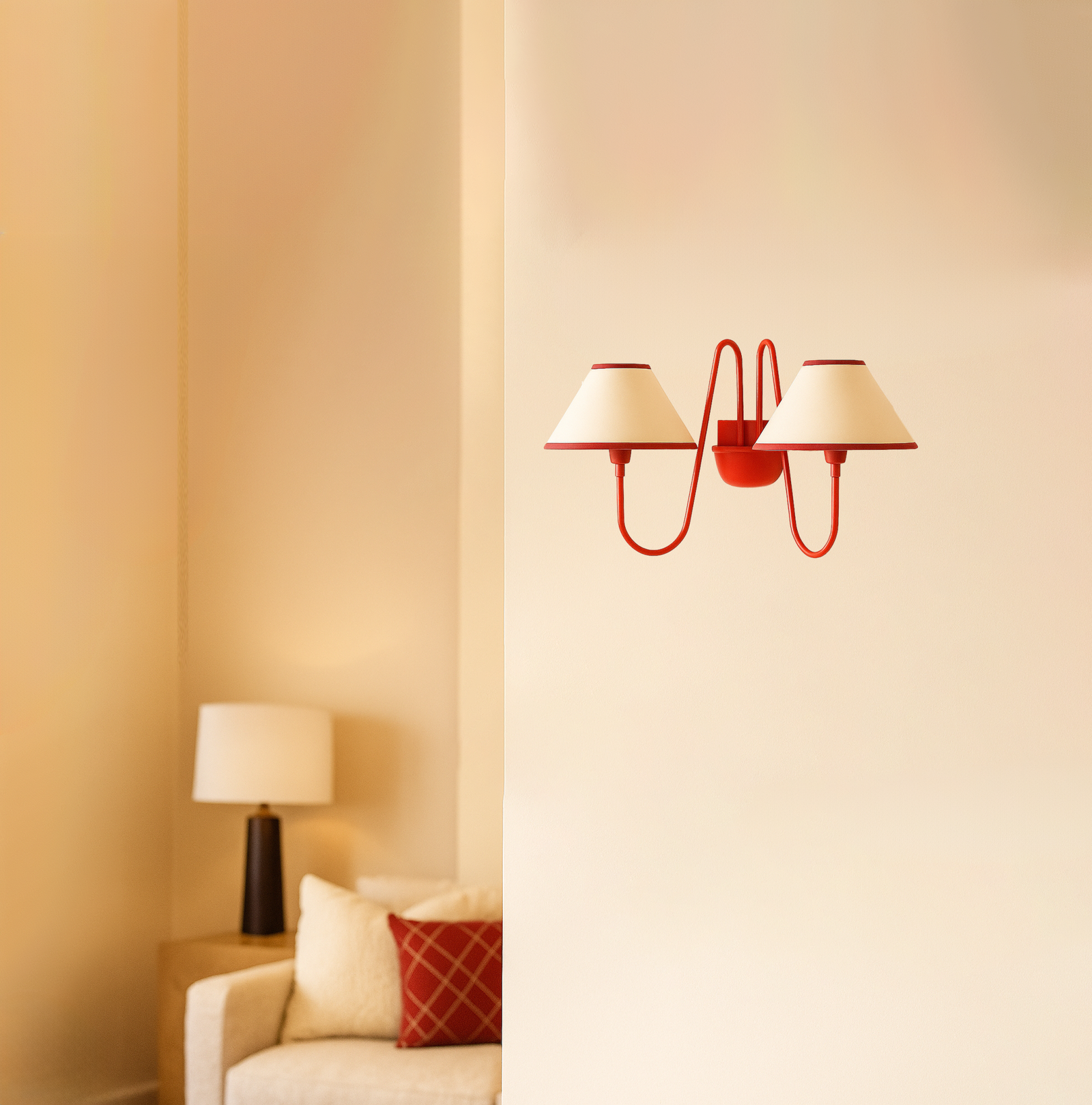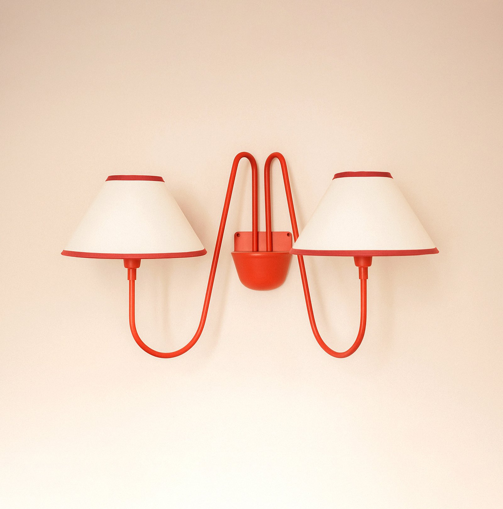 Introducing our exquisite wall lamp, a stunning addition to your home decor. With its sleek red color finish, this lamp exudes a sense of contemporary elegance that will enhance any space. The striking design, reminiscent of a delicate two branches, adds a touch of nature-inspired beauty to your walls. Its unique shape, gives it a charming and playful aesthetic that will surely catch the eye of your guests.